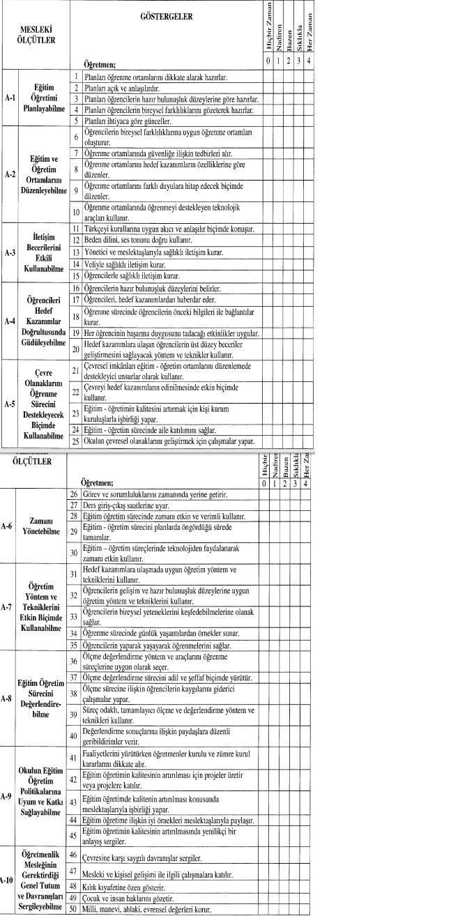 Bu ekran üzerinden girilen değerlendirme sonuçları öğretmen bazında listelenip çıktı alınacak ve bu çıktılar okul idaresi tarafından imzalandıktan sonra kişinin dosyasına konulacaktır.