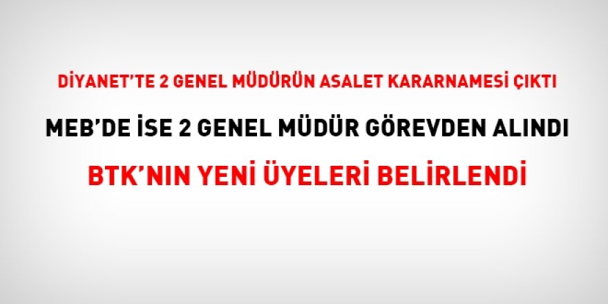 12 Eylül 2019 tarihli atama kararnamesi yayımlandı. Diyanet İşleri Başkanlığında 2 Genel Müdürün atama kararnamesi çıktı. MEB'de 2 Genel müdür görevden alındı