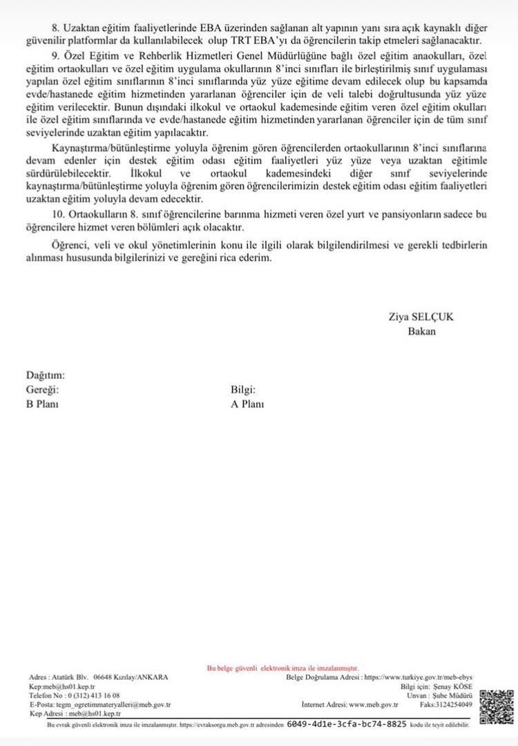 Tüm resmi ana sınıflarında ise uzaktan eğitime geçilecektir.
