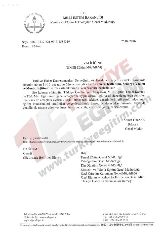 MEB'den Kamera Kullanımı, Senaryo Yazımı ve Montaj Eğitimi Yazısı