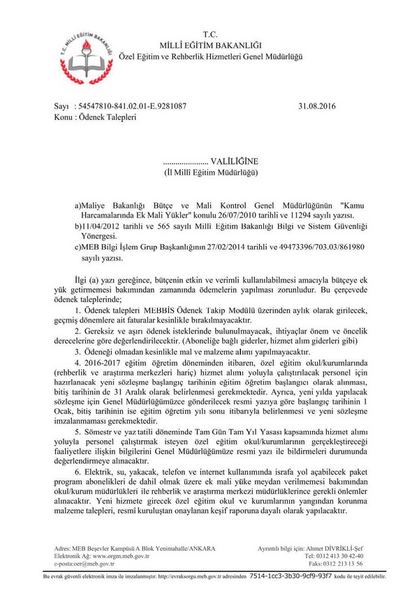 MEB'den ödenek talepleri yazısı. Milli Eğitim Bakanlığı, okullara göndermiş olduğu yazı ile ödenekler ve yapılacak iş ve işlemlerle ilgili bilgi verdi.
