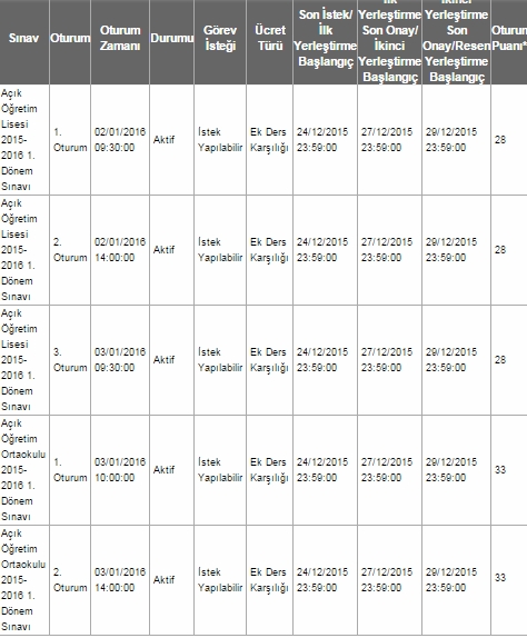 ** Puan hesaplaması sınavda salon görevlisinin aldığı ücretin sınavın maksimum süresine bölümünün 100 ile çarpılması şeklindedir. ==> (Ucret/Süre)*100 Görevli Öğretmenler;
