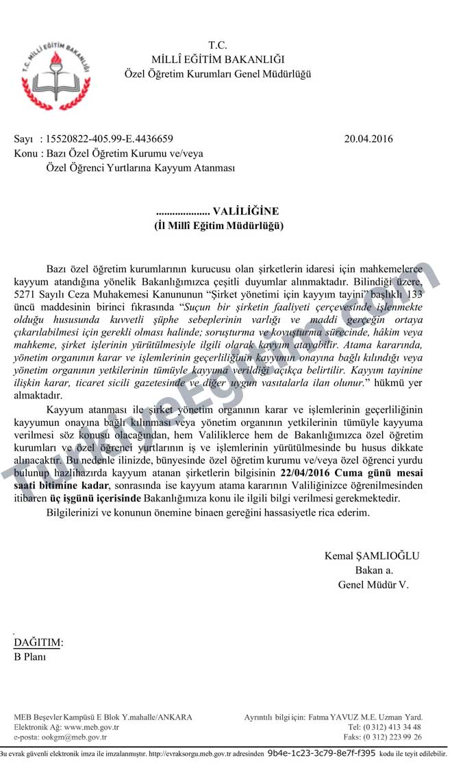 MEB'den Özel Okul ve Yurtlara Kayyum Atanması Açıklaması