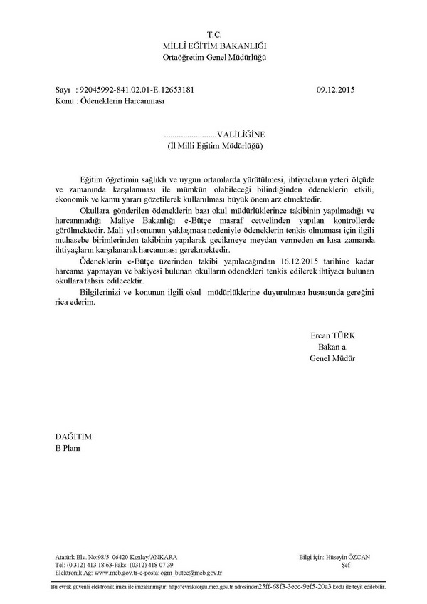 MEB'den ödenekleri harcayın emri Milli Eğitim Bakanlığı Ortaöğretim Genel Müdürlüğü Ödeneklerin kullanılması konusunda bir resmi yazı yayımladı