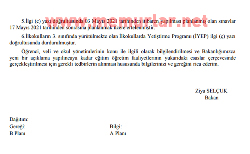 Resmi yazıya göre, 3 Mayıs'tan itibaren yapılması planlanmış olan sınavlar 17 Mayıs'tan itibaren yapılacak