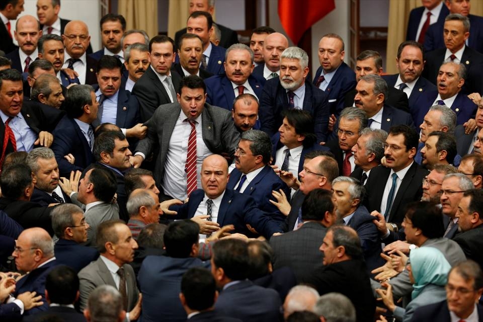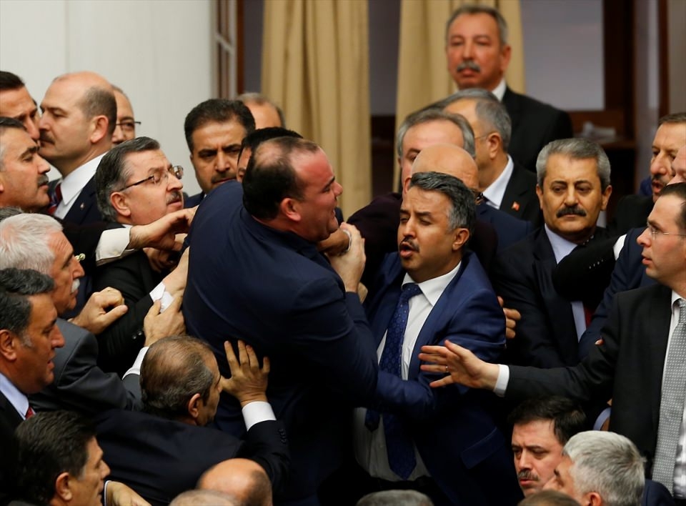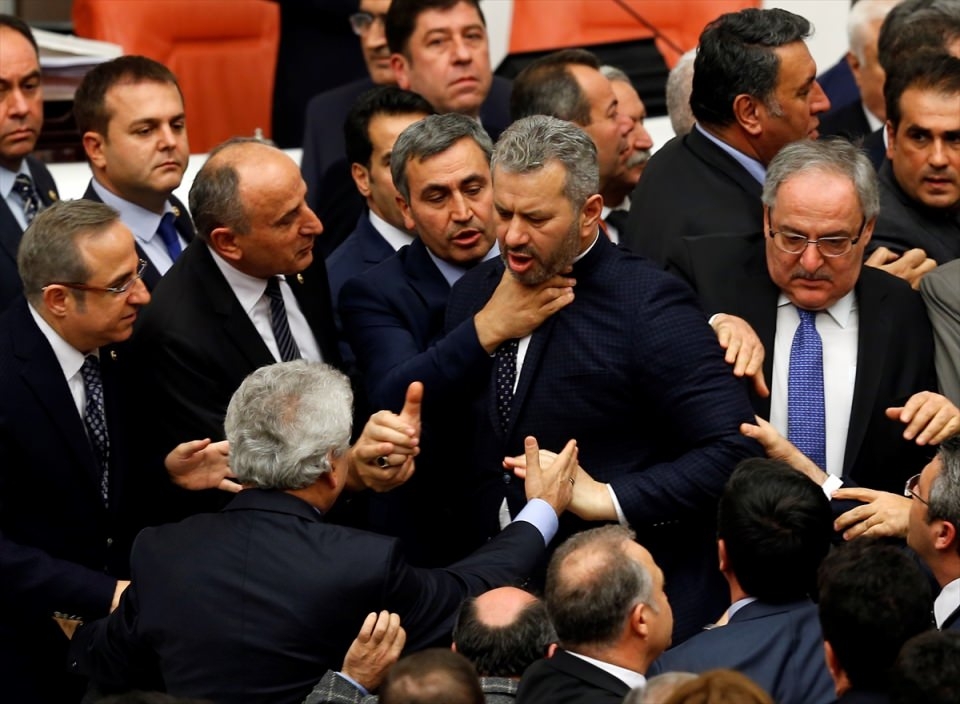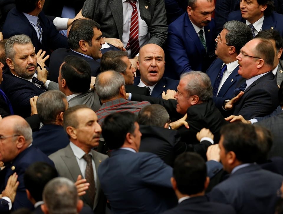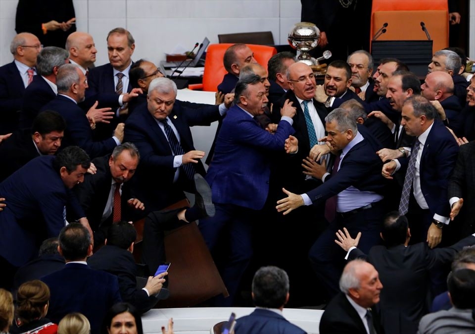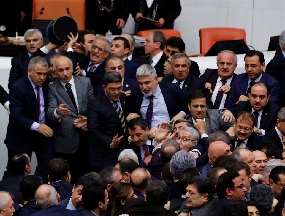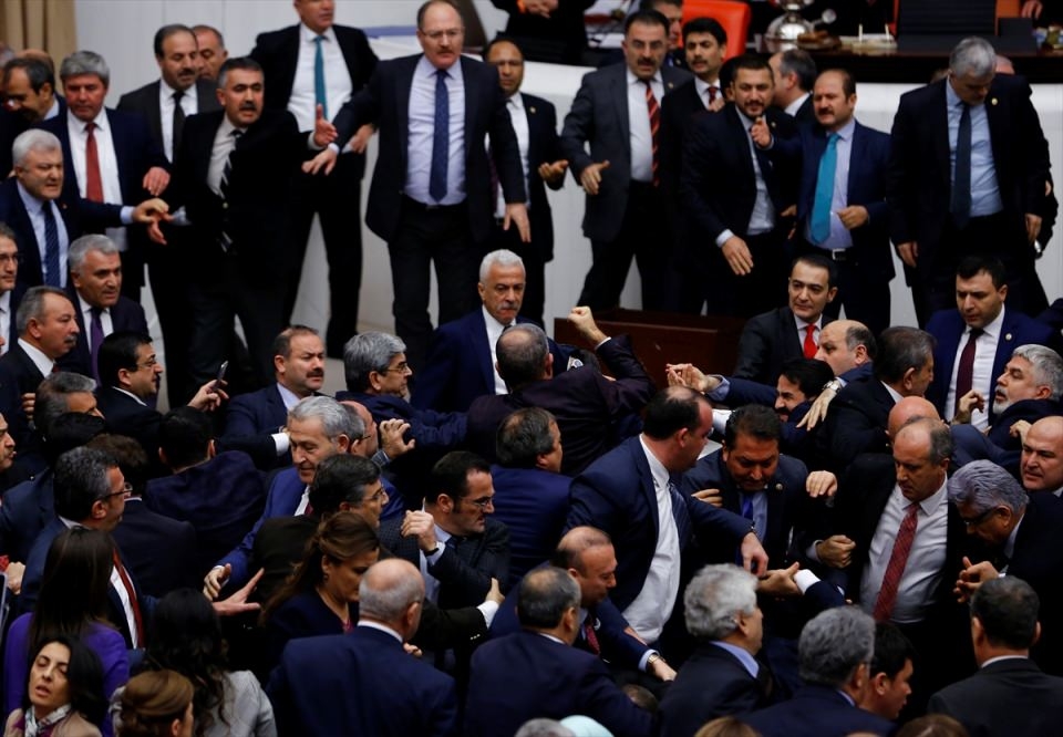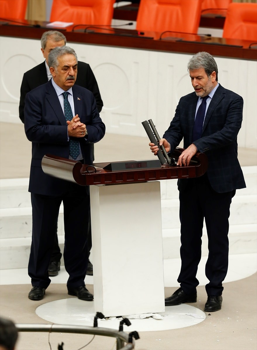 Bunun üzerine AK Parti'liler kürsü ile Başkanlık Divanı arasına geçerek, CHP'lileri kürsüden uzaklaştırmaya çalıştı. Bu sırada iki partinin milletvekilleri arasında yumruklaşmaya varan kavga yaşandı, bazı milletvekillerinin yaralandığı görüldü.