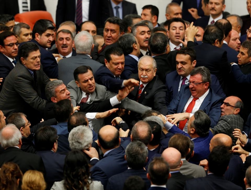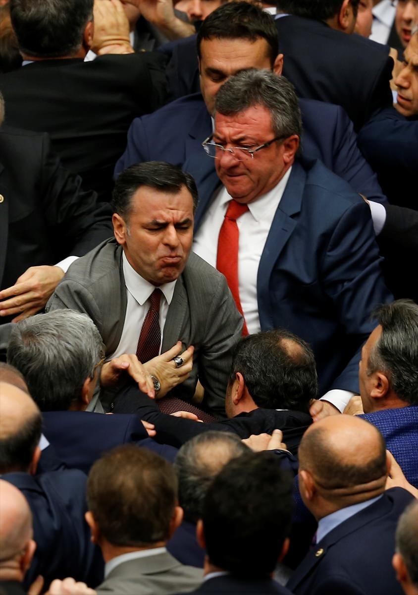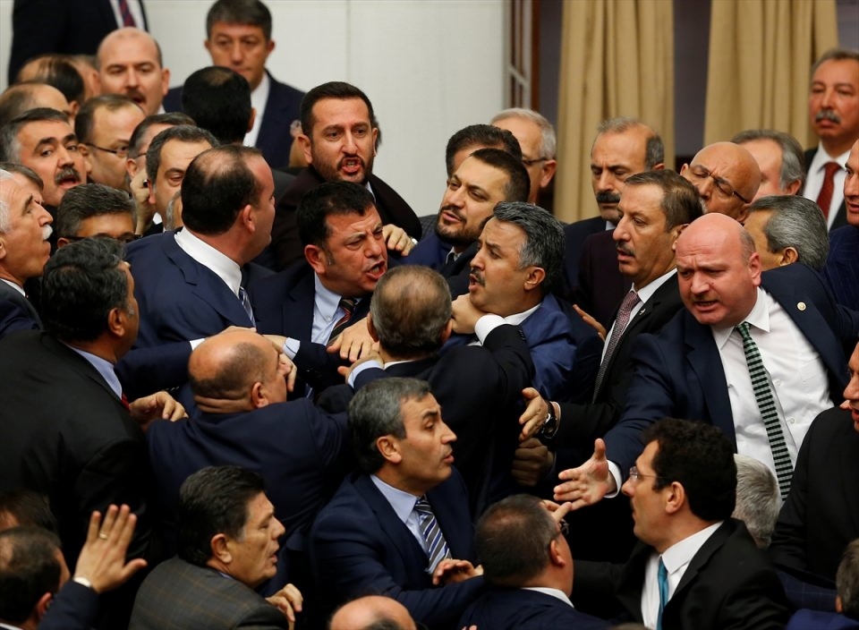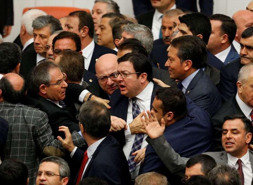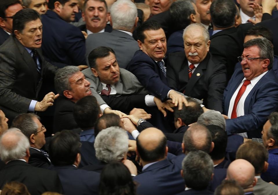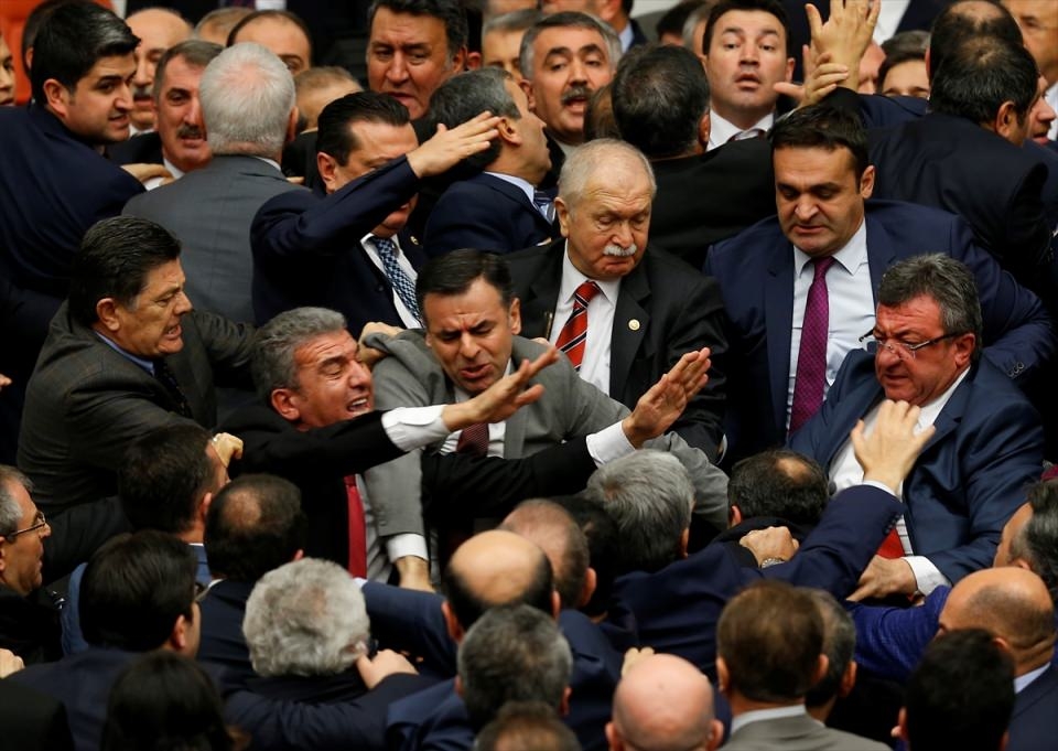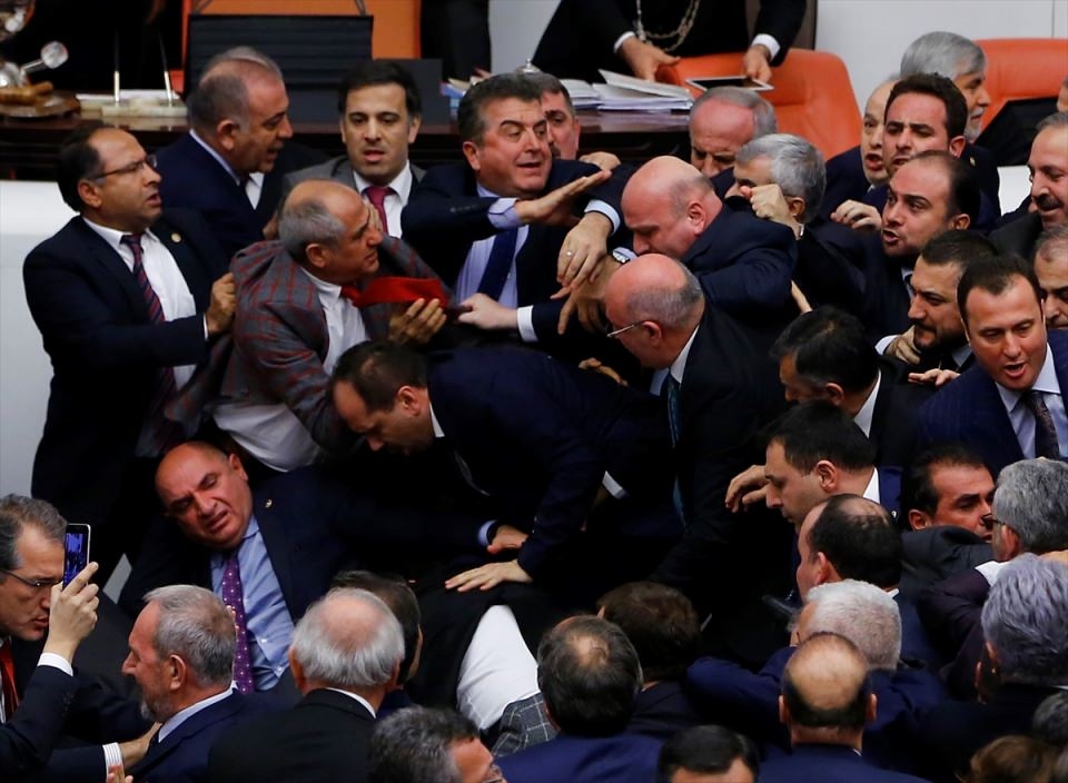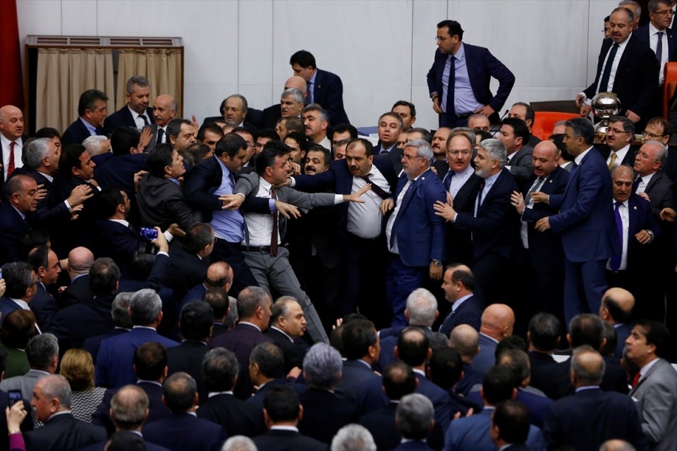 Bunun üzerine AK Parti'liler kürsü ile Başkanlık Divanı arasına geçerek, CHP'lileri kürsüden uzaklaştırmaya çalıştı. Bu sırada iki partinin milletvekilleri arasında yumruklaşmaya varan kavga yaşandı, bazı milletvekillerinin yaralandığı görüldü.