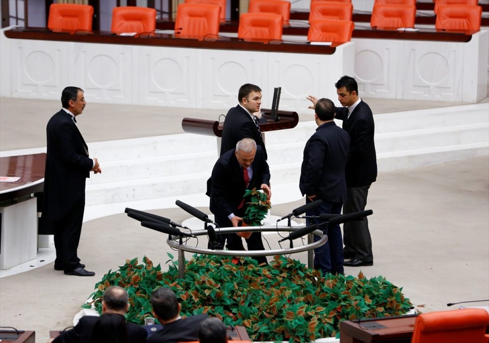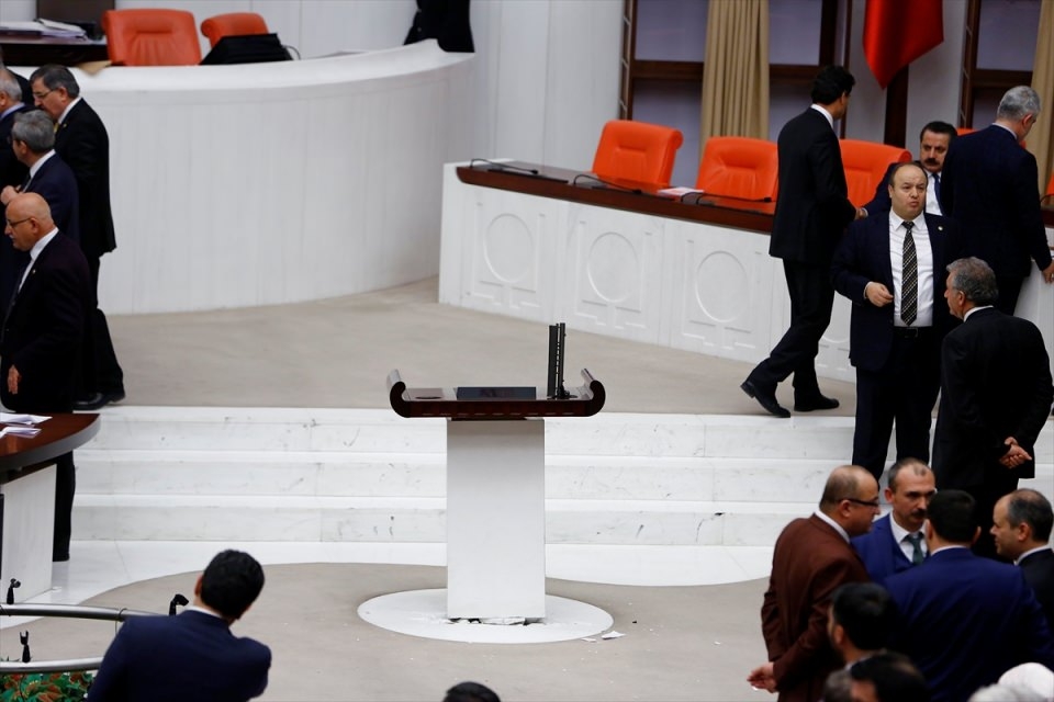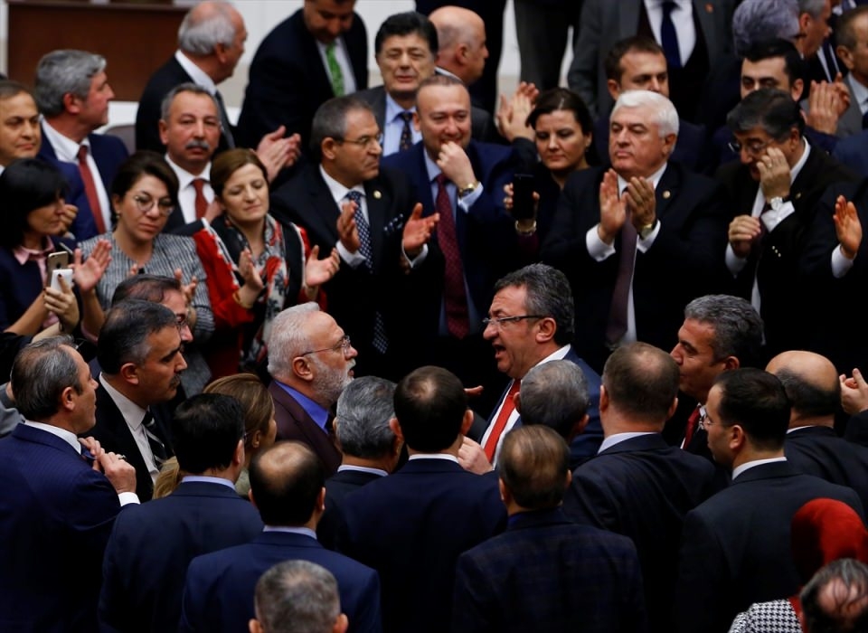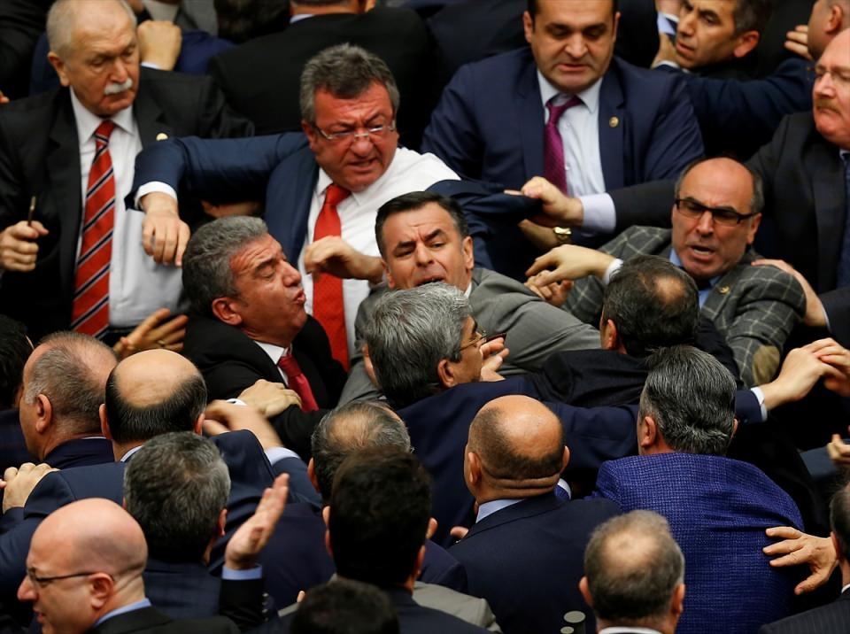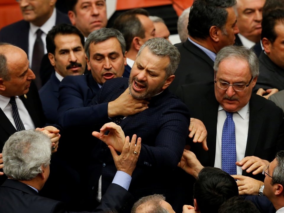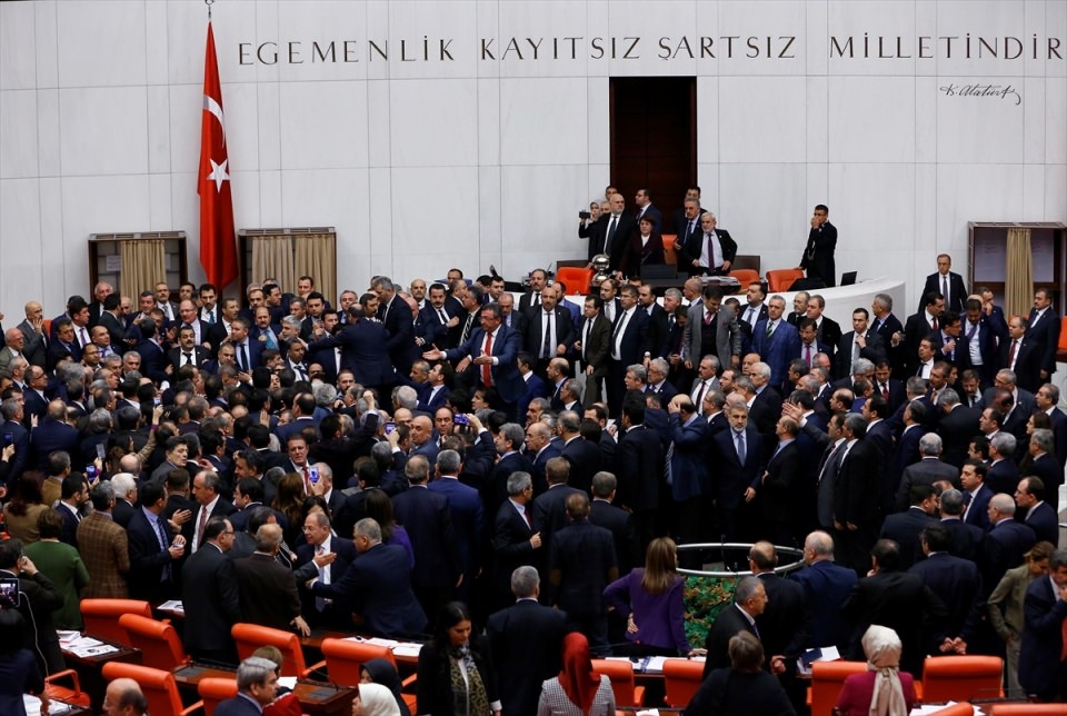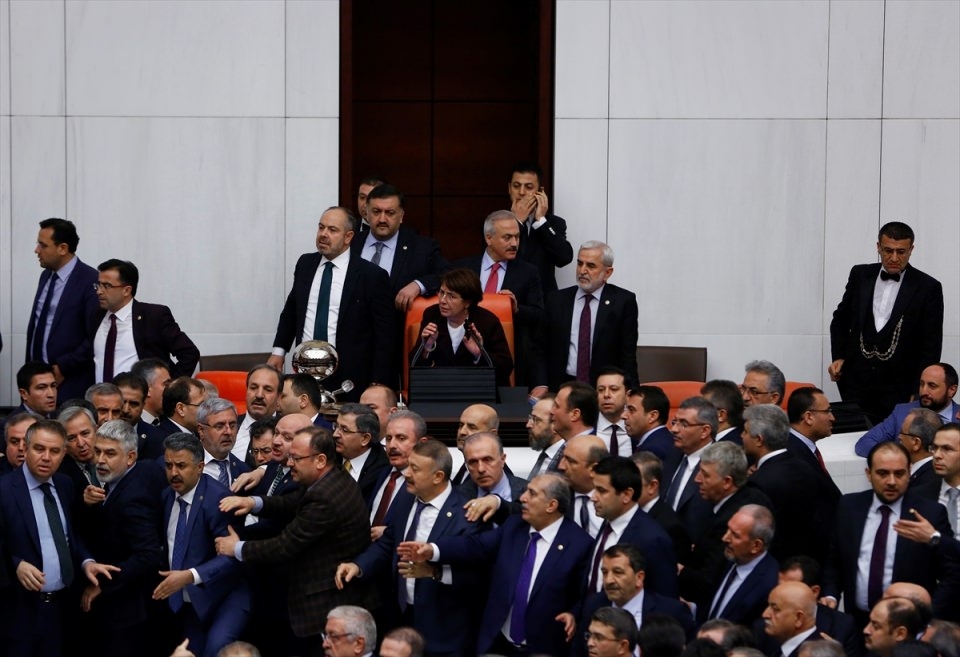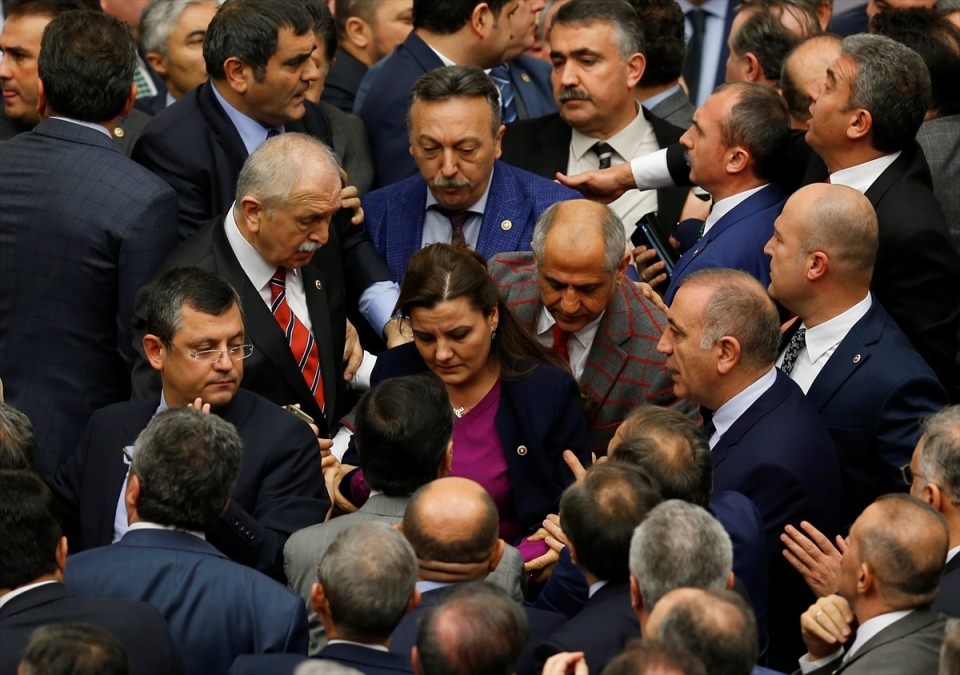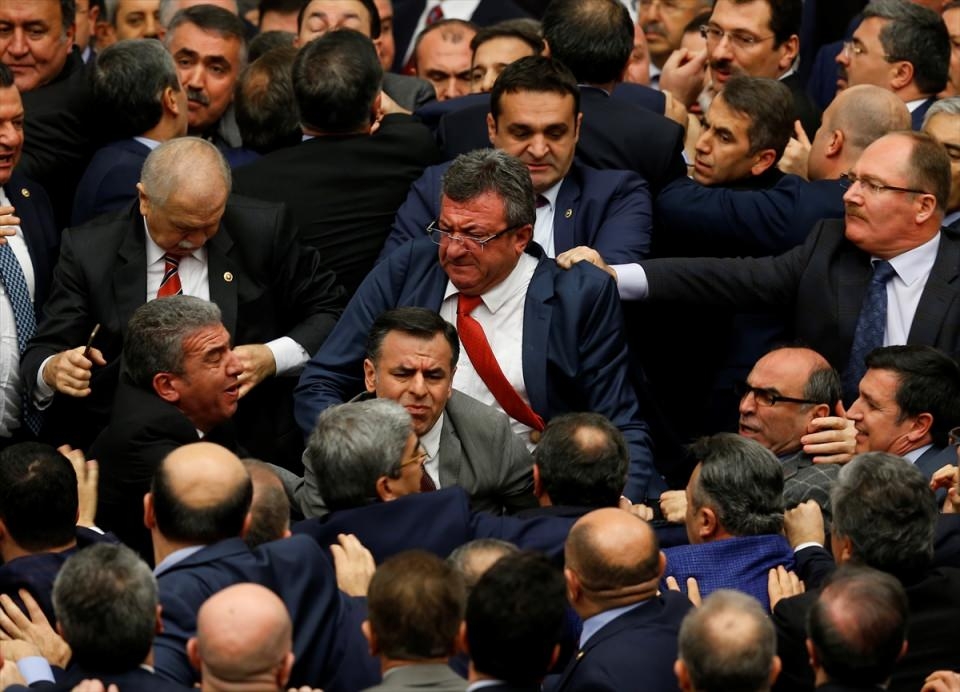 Bunun üzerine AK Parti'liler kürsü ile Başkanlık Divanı arasına geçerek, CHP'lileri kürsüden uzaklaştırmaya çalıştı. Bu sırada iki partinin milletvekilleri arasında yumruklaşmaya varan kavga yaşandı, bazı milletvekillerinin yaralandığı görüldü.