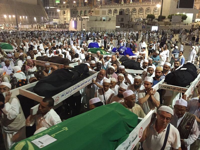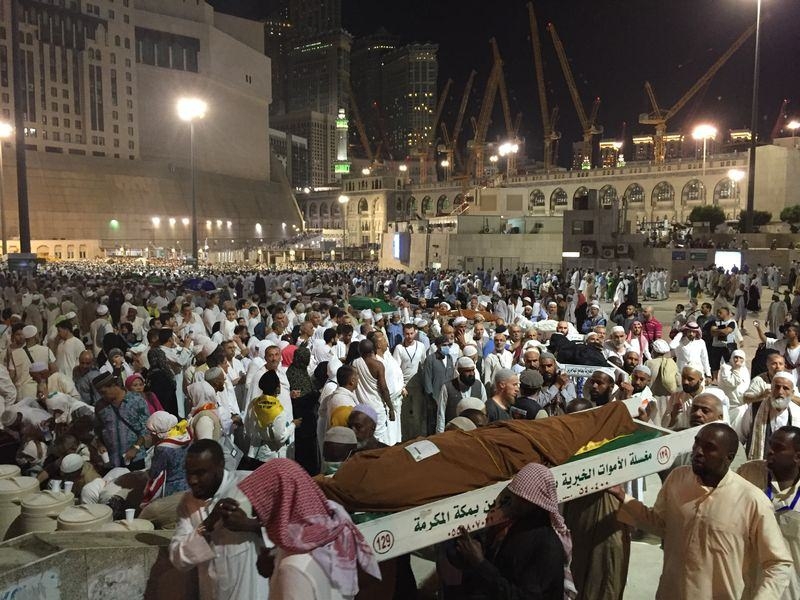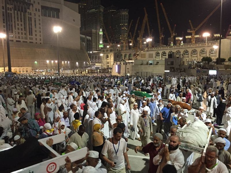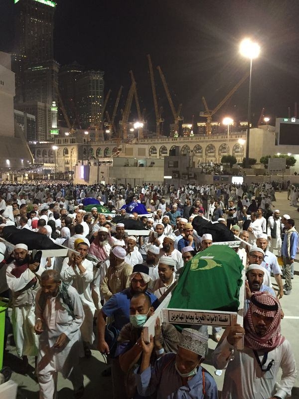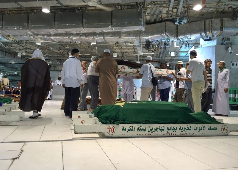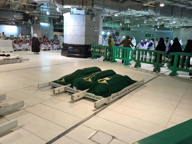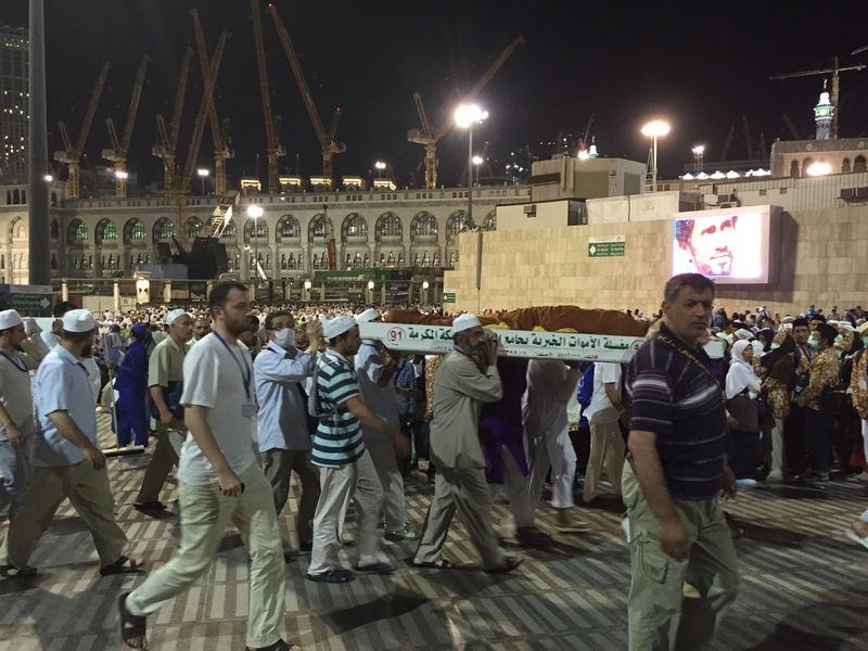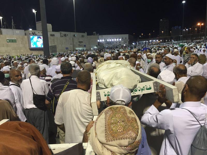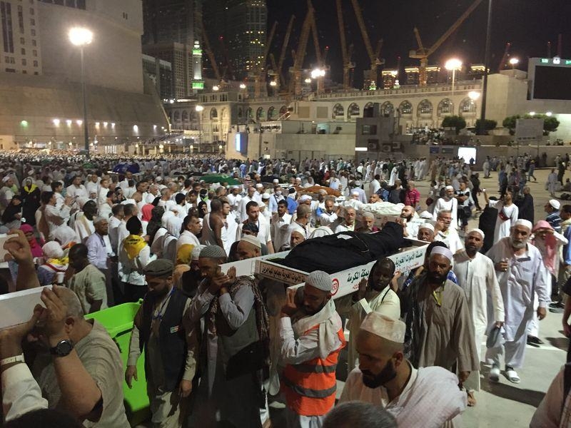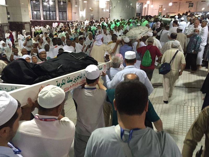 Kılınan cenaze namazının ardından cenazeler Mescid-i Haram'dan çıkarılarak defnedilecekleri Kabe Şehitleri Mezarlığı'na götürüldü.