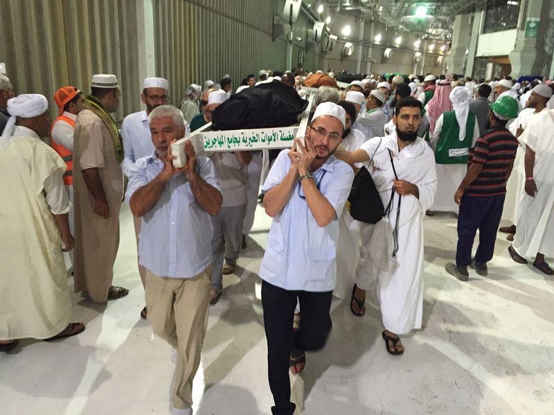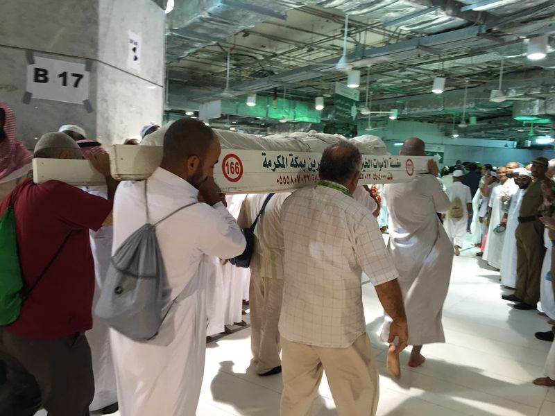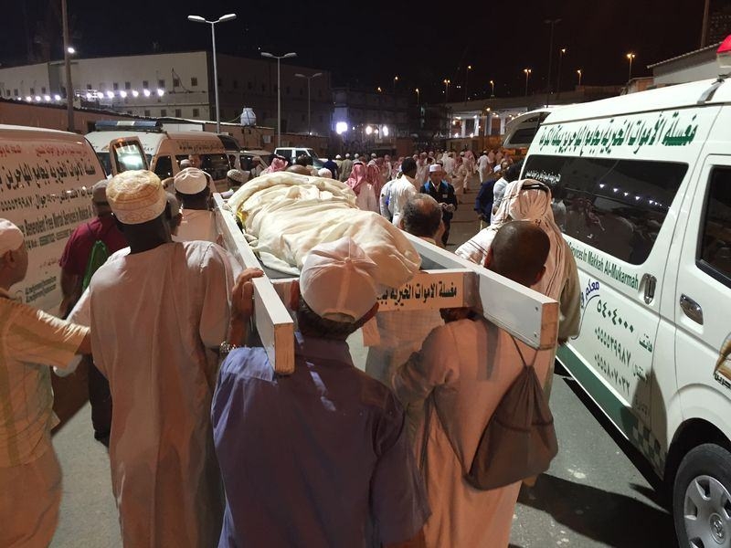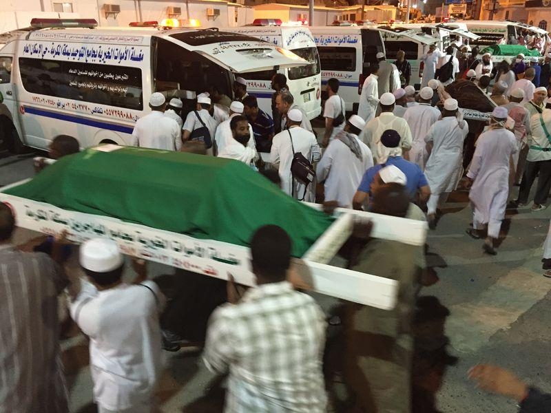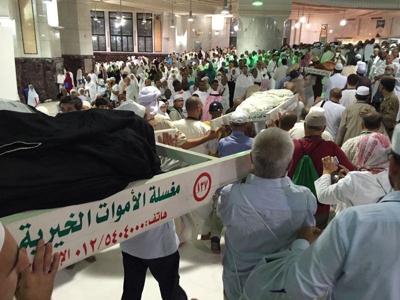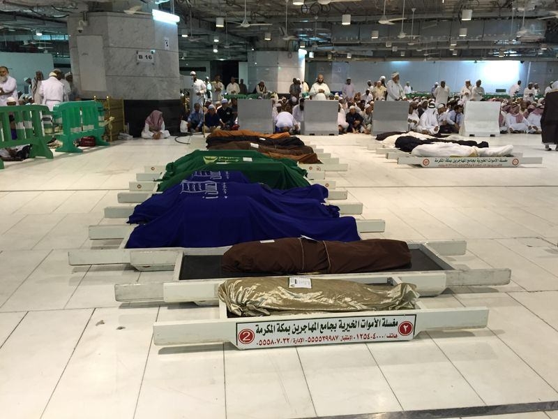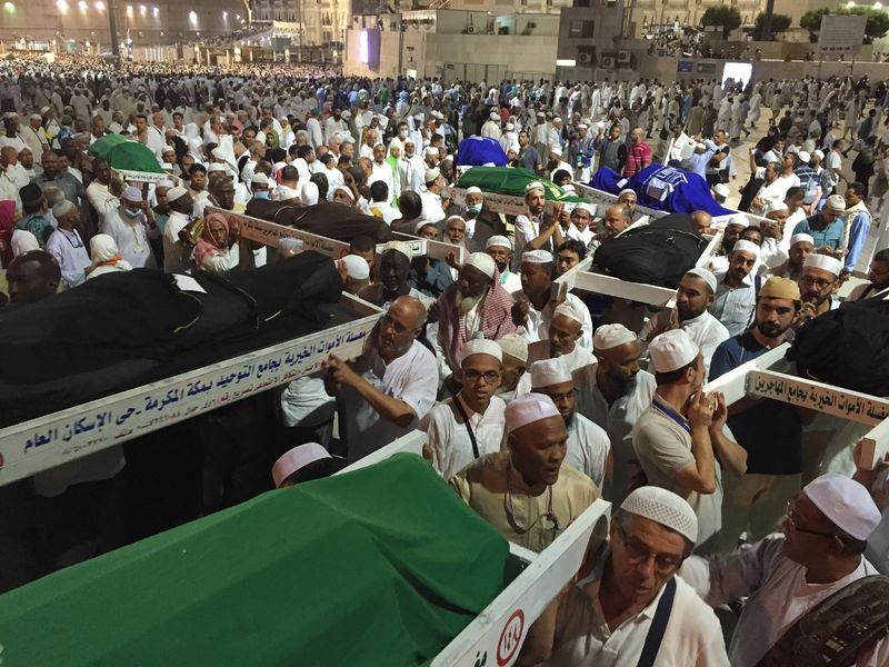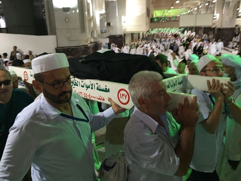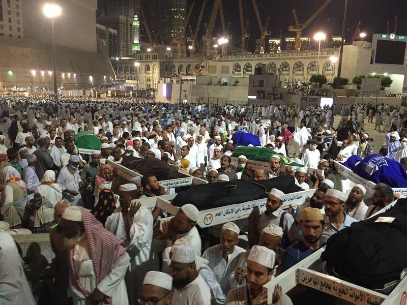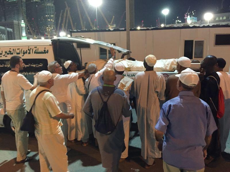 Kılınan cenaze namazının ardından cenazeler Mescid-i Haram'dan çıkarılarak defnedilecekleri Kabe Şehitleri Mezarlığı'na götürüldü.