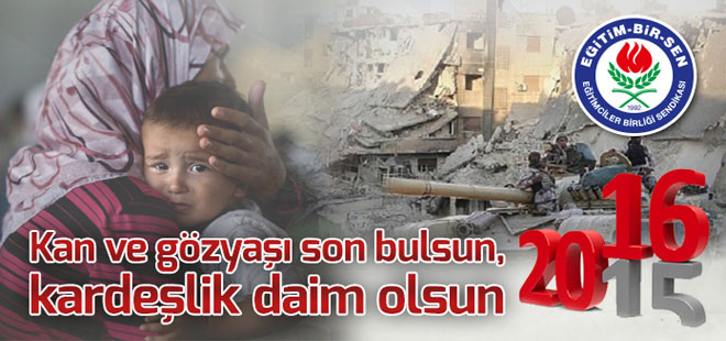 2016 yılının, ülkemizin yeni Anayasası’na kavuştuğu, sürdürülmekte olan demokratikleşme hamlesinin tamamlandığı, kamu görevlilerinin elde ettikleri toplu sözleşme hakkının siyaset ve grev hakkıyla taçlandırıldığı, örgütlenmenin önündeki engellerin kaldırıldığı, kamu görevlilerimize, milletimize ve insanlığa sevgi, barış, sağlık ve hoşgörünün egemen olduğu bir yıl olmasını diliyoruz.