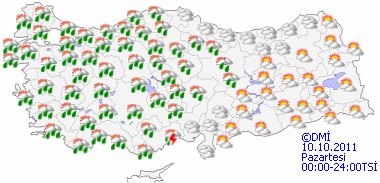 KUVVETLİ YAĞIŞ UYARISI: Marmara, Ege, Batı Akdeniz ile Ankara, Eskişehir, Konya, Kırşehir, Nevşehir ve Aksaray çevrelerinde kuvvetli, Antalya çevrelerinde aşırı olması beklendiğinden yaşanabilecek olumsuzluklara karşı (sel, su baskını, taşkın, yıldırım düşmesi, ulaşımda aksamalar vb.) ilgililerin ve vatandaşların dikkatli ve tedbirli olmaları gerekmektedir.