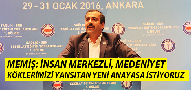 Metin Memiş, Sağlık-Sen Teşkilat Eğitim Toplantıları’nın birincisinin açılışında yaptığı konuşmada, yeni anayasa taleplerini, terörle mücadeleyi, 657 Sayılı Devlet Memurları Kanunu ve memurların iş güvencesine yönelik değerlendirmelerde bulundu.