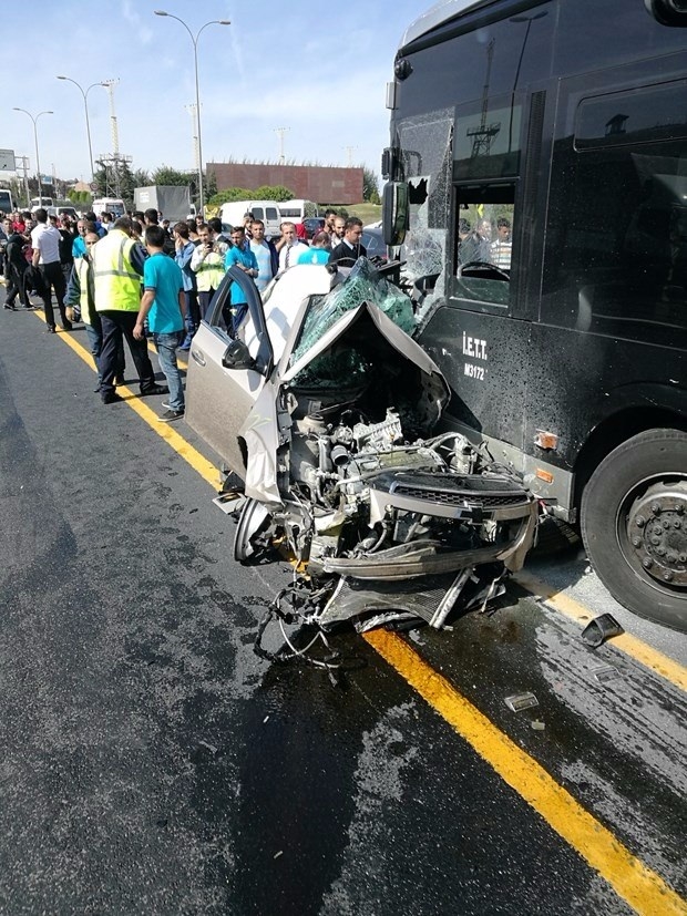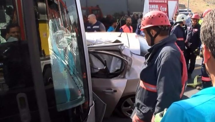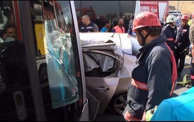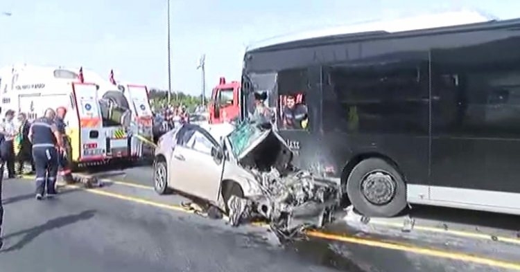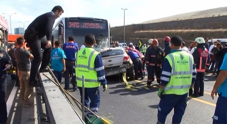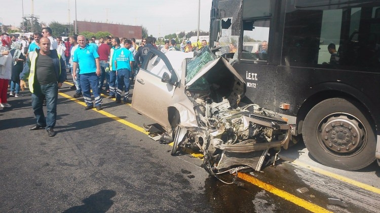 Karşı yönden gelen metrobüs ile kafa kafaya çarpışan otomobilin sürücüsü ağır yaralandı.