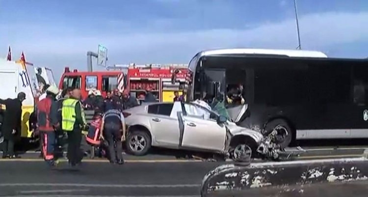 Metrobüs yolunun Sefaköy ile Yenibosna durağı arasında kaza meydana geldi.