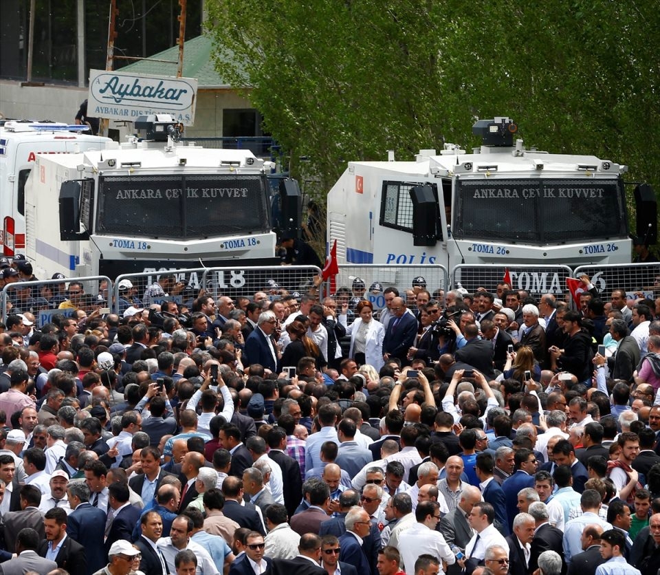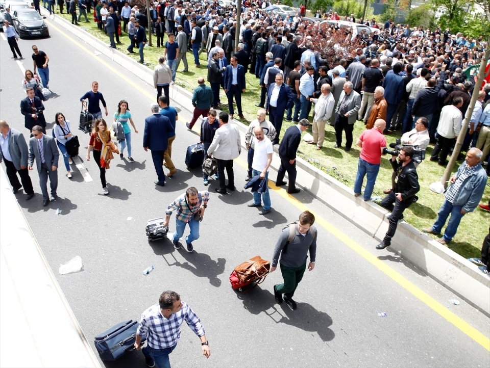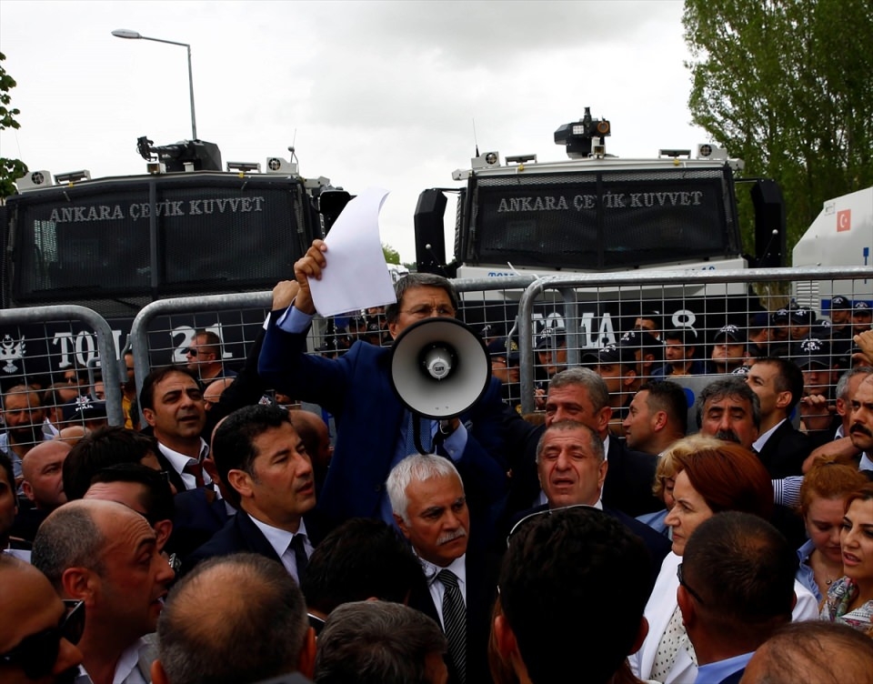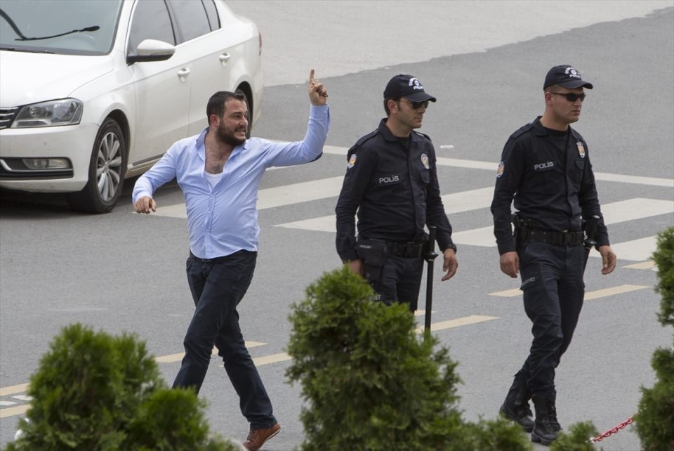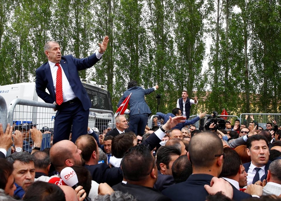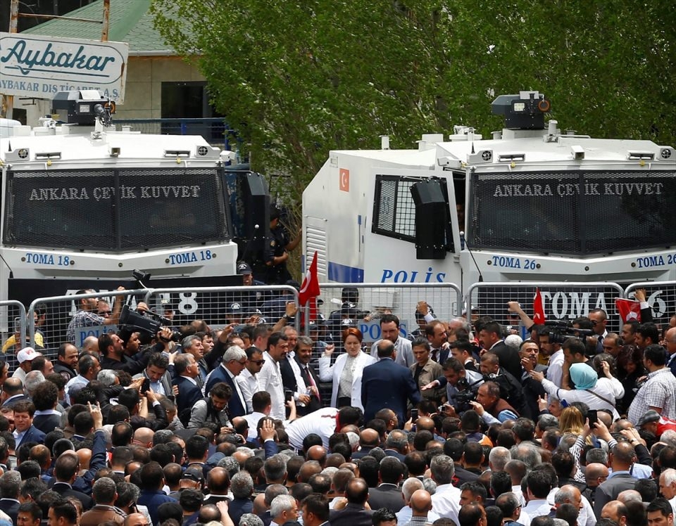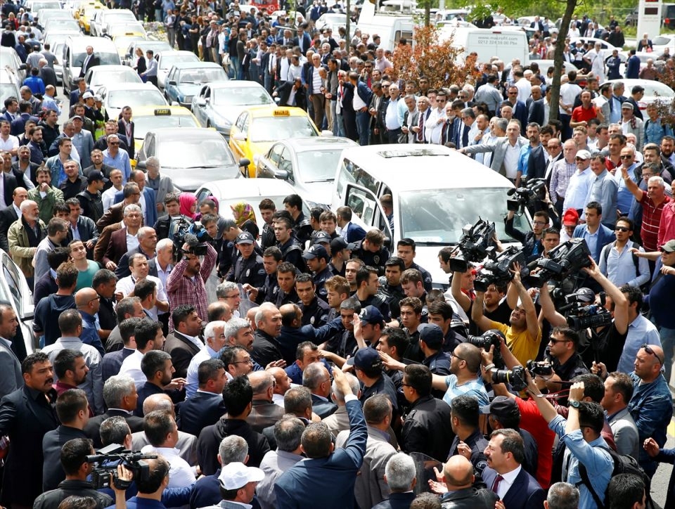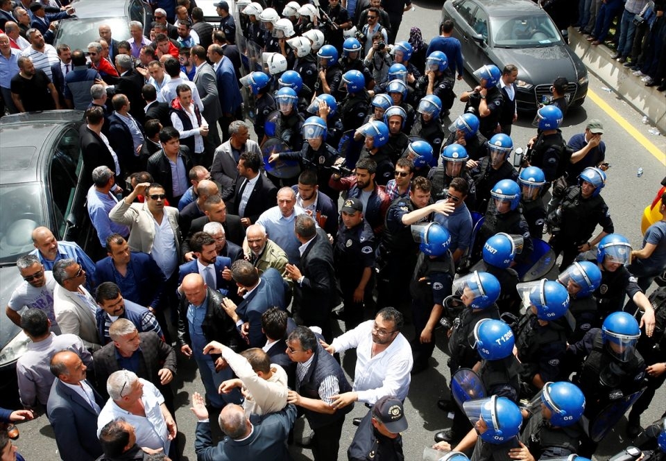 Bu arada parliler arasında henüz belirlenemeyen bir nedenle yaşanan tartışma arbedeye dönüştü. Bir kişinin demir parmaklıklar üzerinden genel merkez alanından çıkarılmaya çalışılması üzerine polis olaya müdahale etti.