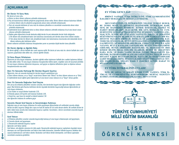 Milli Eğitim Bakanlığı’nın 2013-2014 Eğitim-Öğretim yılı 1. Dönem karnesi