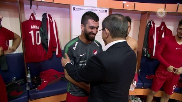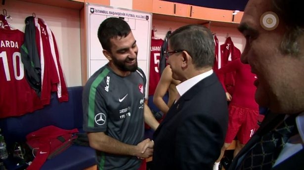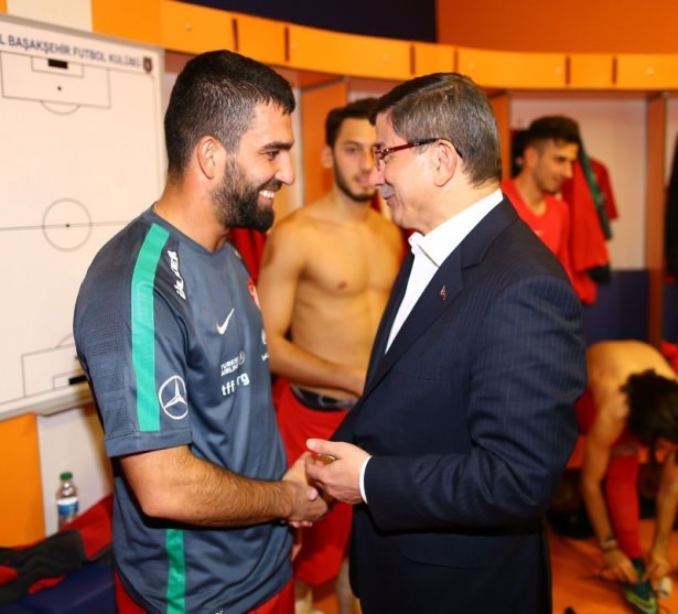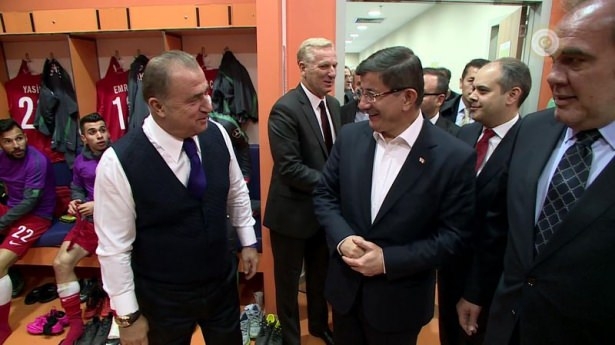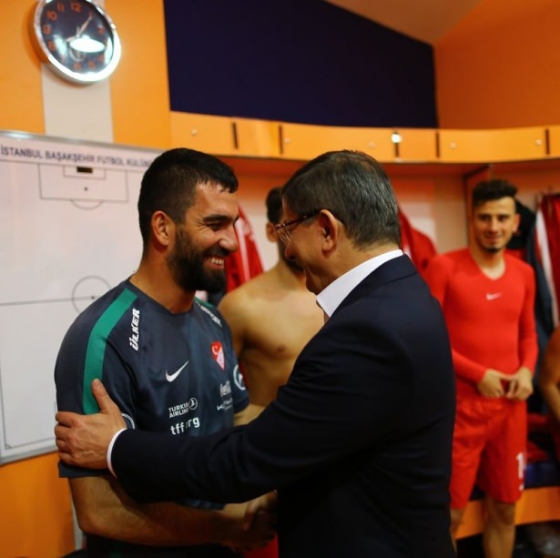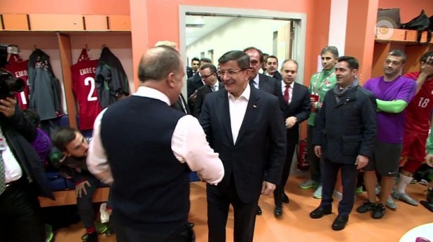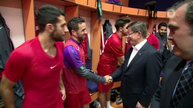 Başbakan Ahmet Davutoğlu'nun, maçtan önce A Milli Futbol Takımı'nın soyunma odasına giderek, teknik heyet ve oyunculara başarılar dileğinde bulundu.