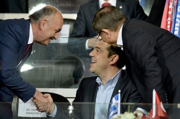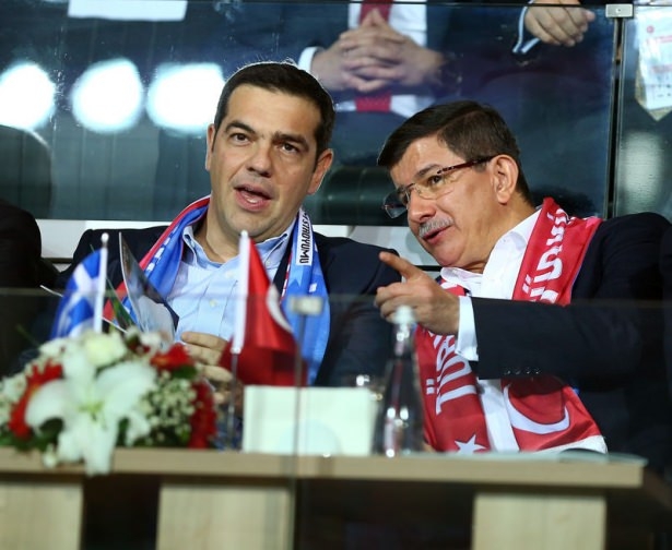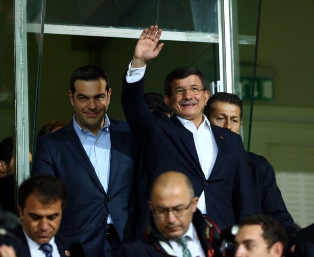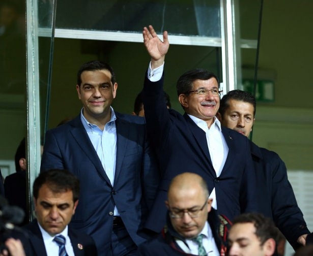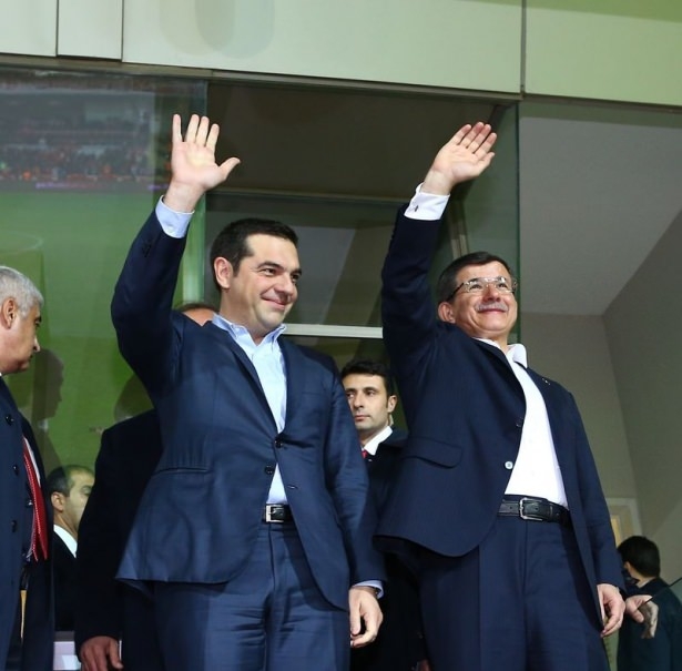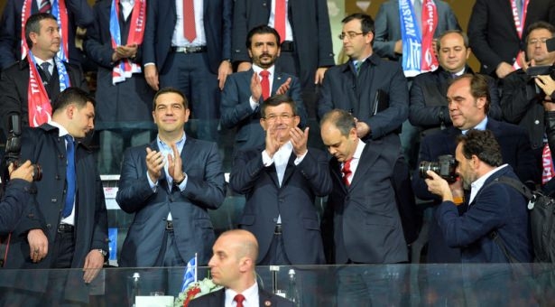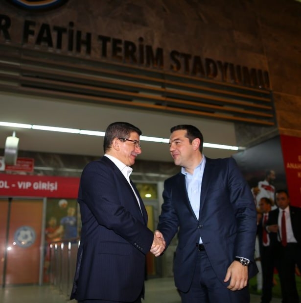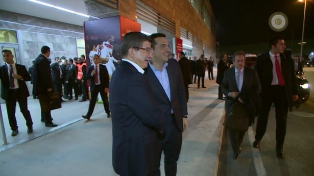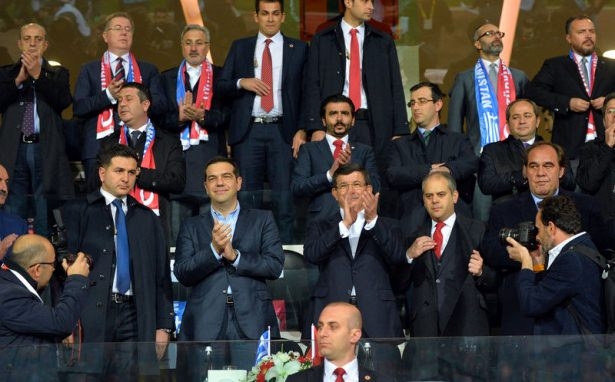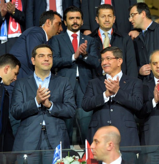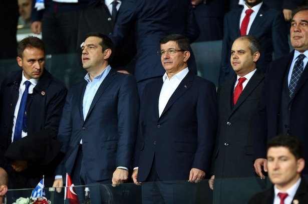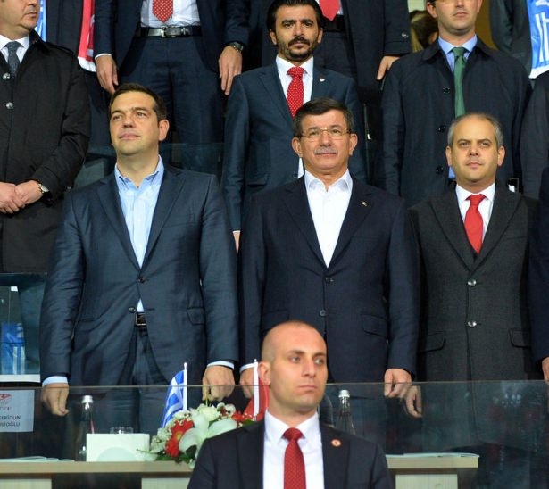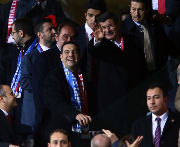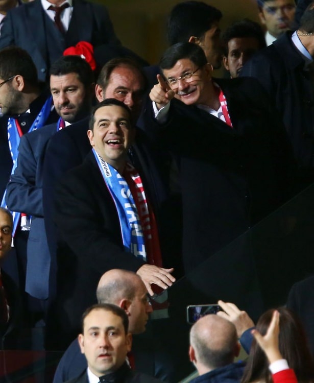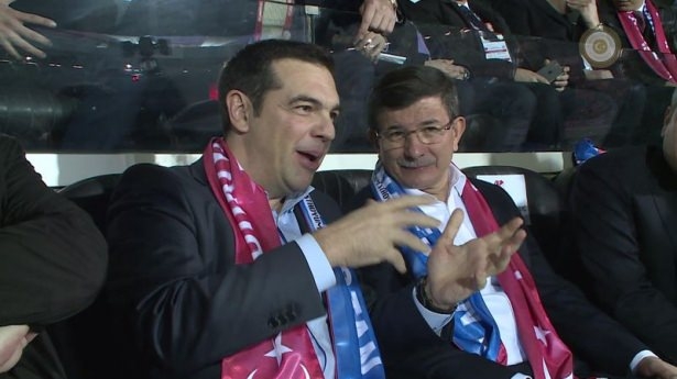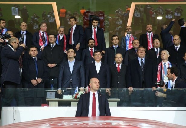 Türkiye ile Yunanistan arasındaki yapılan özel maçı, Başbakan Ahmet Davutoğlu ile Yunanistan Başbakanı Aleksis Çipras da izledi