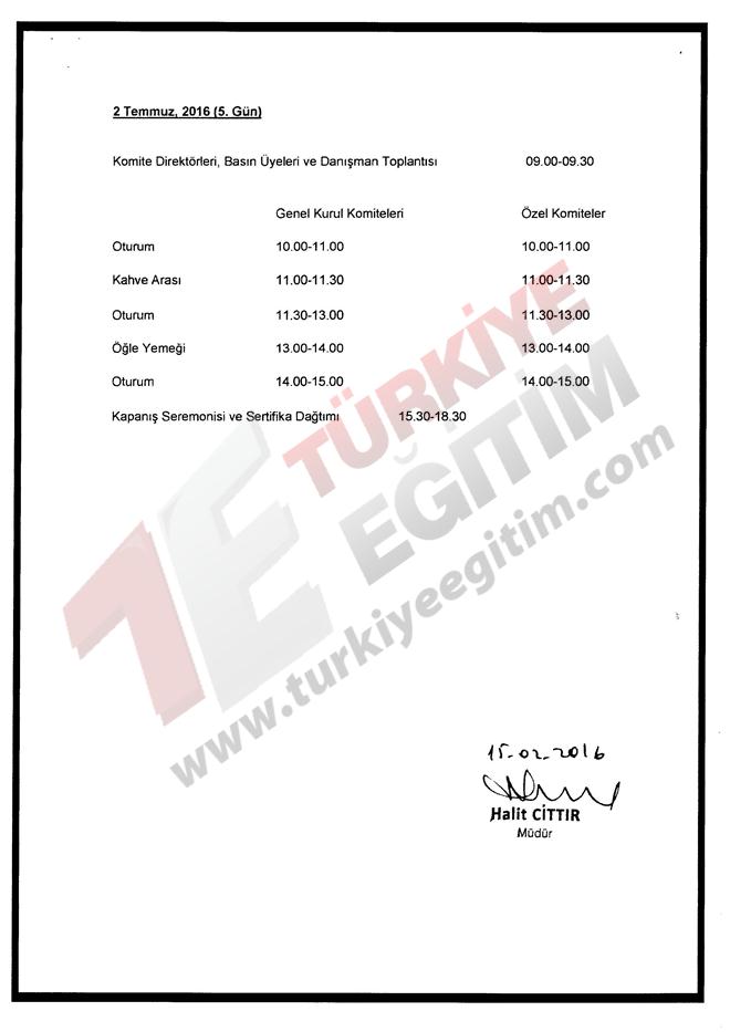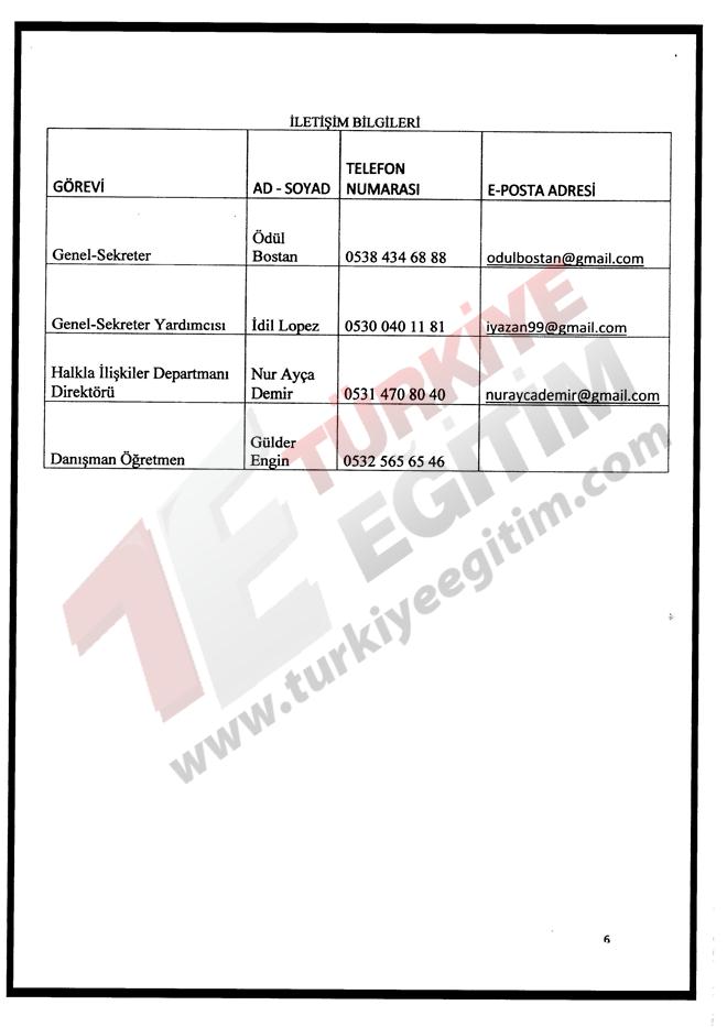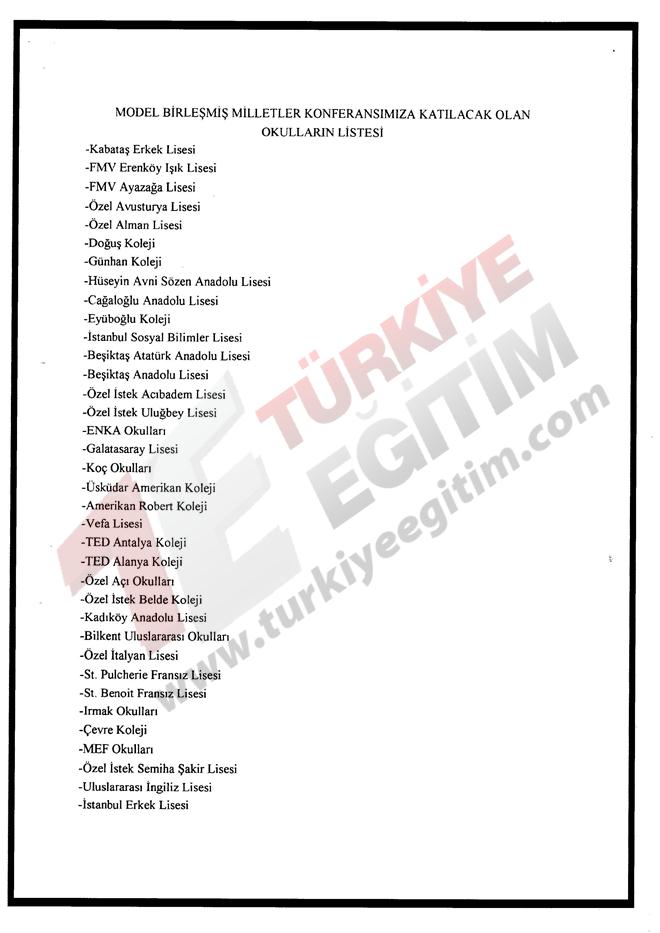 Türkiye geneli resmi/özel tüm lise ve dengi okul öğrencilerine yönelik "Model Birleşmiş Milletler Konferansı" düzenleme talebine ilişkin ilgi yazı