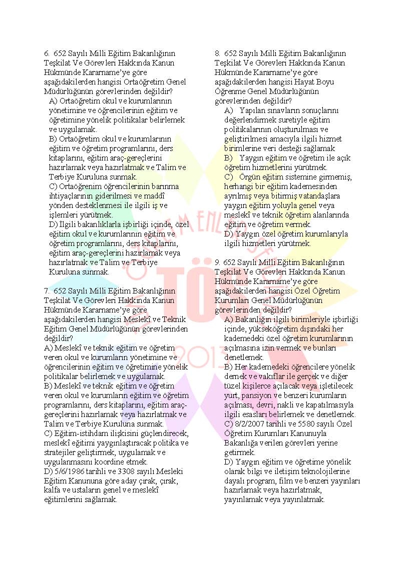 Müdür Yardımcılığı Sınavı Soru Bankası - 652 MEB Teşkilat
