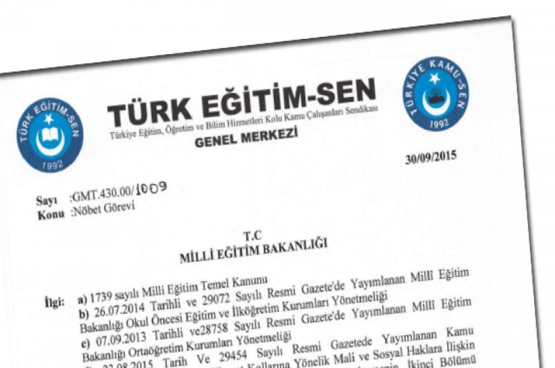 Türk Eğitim Sen ve Eğitim Bir Sen'in girişimde bulunduğu, müdür yetkili öğretmenlere de nöbet ücreti verilmesi hususunda MEB İnsan Kaynakları Genel Müdürlüğü olumlu görüş bildirdi.