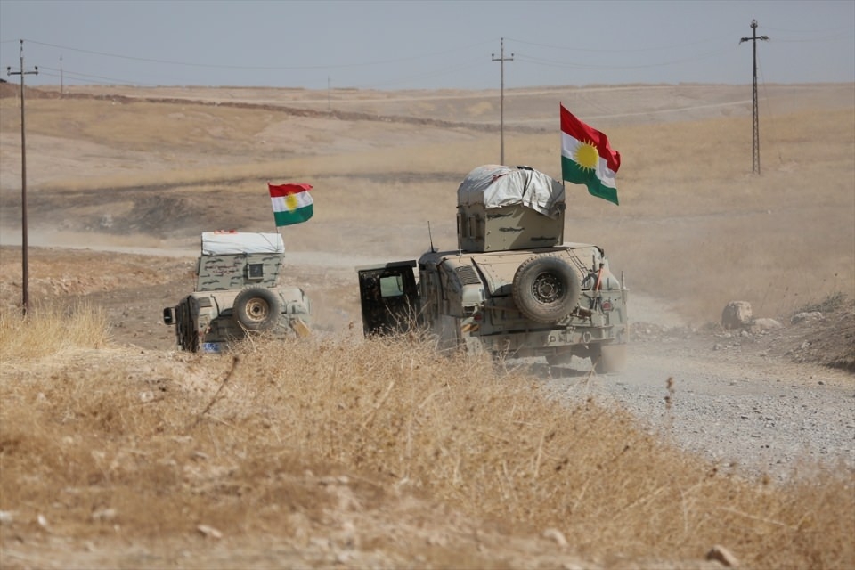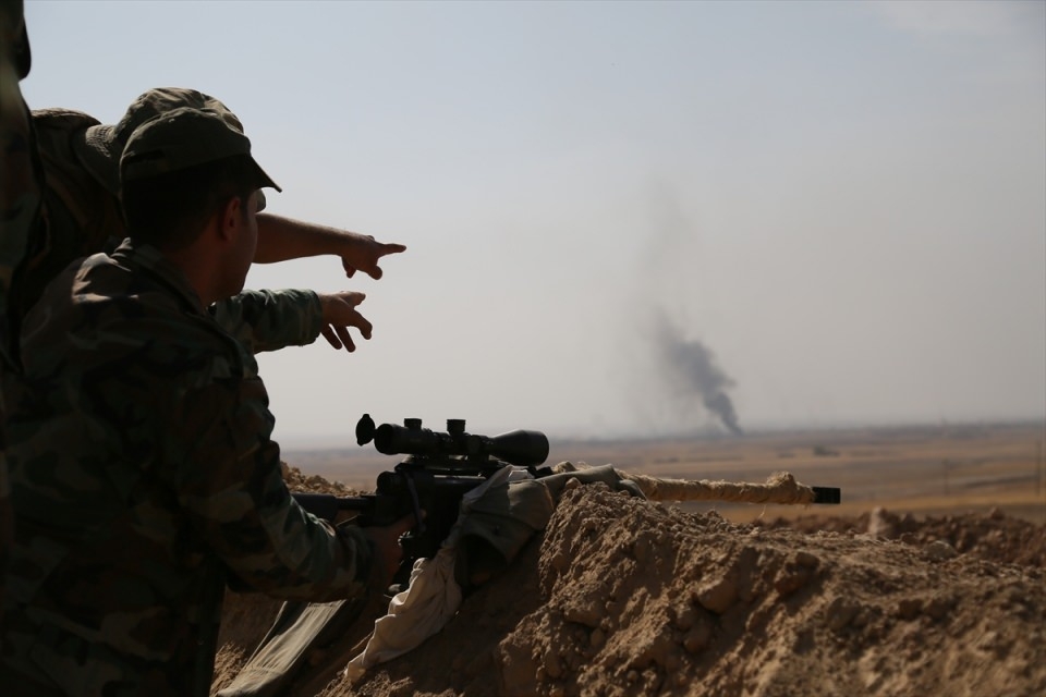 Peşmergeler siperde, DEAŞ unsurlarının bulunduğu bölgedeki hareketliliği gözlüyor.