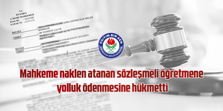 Hakkâri İlinde sözleşmeli öğretmen olarak görev yapmakta iken, İstanbul İline sağlık mazereti nedeniyle ataması yapılan üyemizin sürekli görev yolluğu ödenmesi talebiyle yaptığı başvurunun reddine ilişkin işlemin iptaline karar verildi.