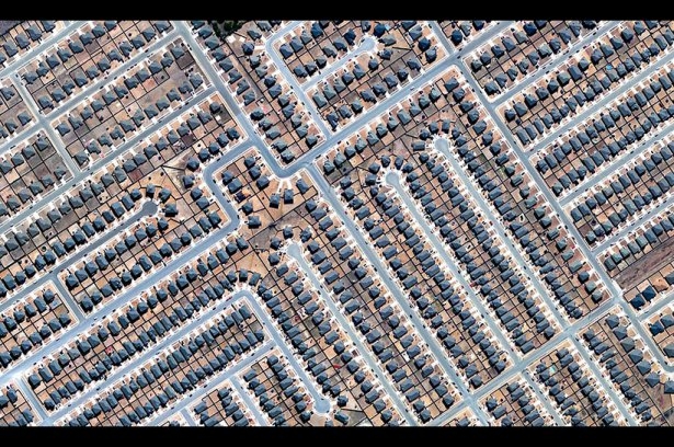 Merkezi eksen sulama alanları: Bu dairesel örüntüler püskürtme makinesi tarafından sulanan ekinler tarafından oluşturulmuştur.