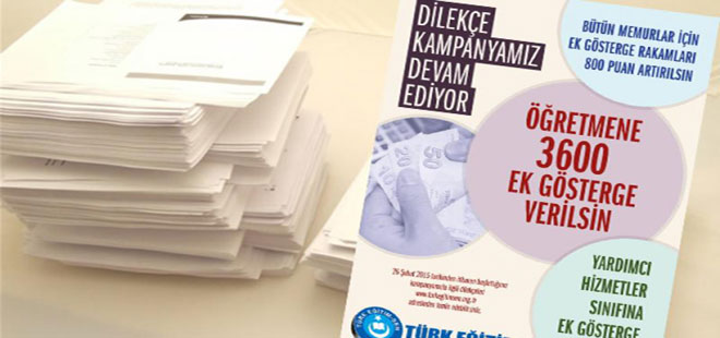 Merkez Yönetim Kurulumuzun aldığı karar doğrultusunda, 26 Şubat 2015 tarihinde Başbakanlık makamına iletilmek üzere bir dilekçe kampanyası başlatılarak ek gösterge rakamlarının artırılması talebi gündeme getirilmişti.