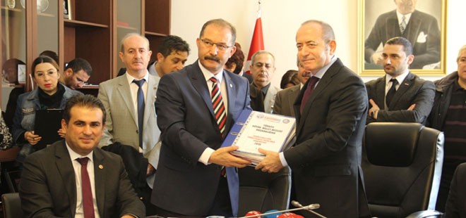 Eğitim-İş Sendikası eğitim çalışanlarının ek göstergesinin yükseltilmesi amacıyla topladığı 100 bin imzayı düzenlenen protokolle TBMM Başkanvekili Akif Hamza Çebi'ye teslim etti.