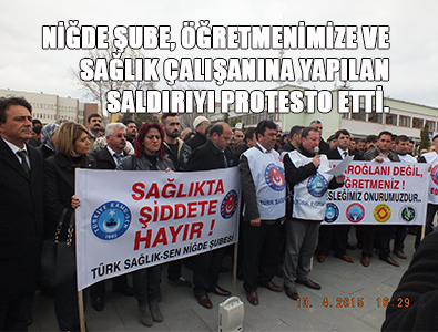10 Nisan 2015 Cuma Günü Bor İlçe Milli Eğitim Müdürü Celalettin Özüdoğru tarafından darp edilen Türk Eğitim Sen Üyesi öğretmen Adem KORKMAZ ve 11 Nisan 2015 Cumartesi günü taşeron firma çalışanı tarafından görevi başında yapılan saldırı protesto edildi.