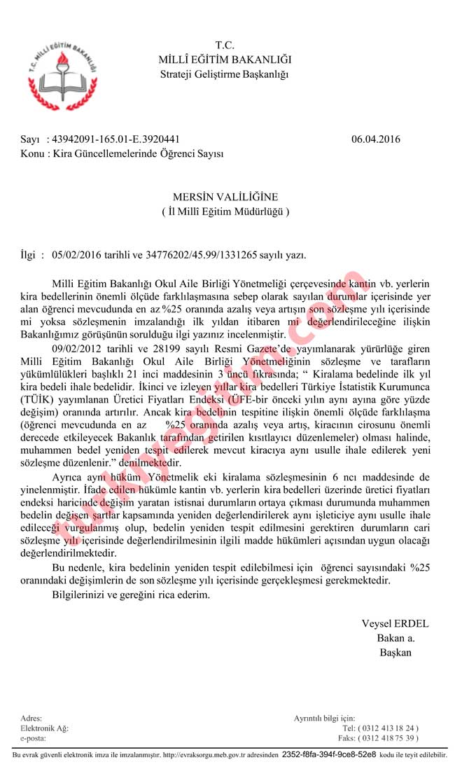Okul-Aile Birlikleri tarafından kantin kiralarının güncellenmesinde bazı konularda tereddüte düşülmektedir. Şöyle ki; öğrenci sayılarında yaşanan %25'e varan azalmalarda nasıl hareket edilecek? Hangi eğitim-öğretim yılı dikkate alınacak?