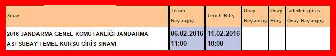 2016 JANDARMA GENEL KOMUTANLIĞI JANDARMA ASTSUBAY TEMEL KURSU GİRİŞ SINAVI, sınav görevi başvuru işlemleri başladı. Başvurular 11 Şubat 2016 Perşembe günü saat 10.00'da sona erecek.Sınav görevi almak isteyenler, ÖSYM Görevli İşlemleri Sistemi üzerinden görev talebinde bulunabilirler.
