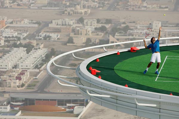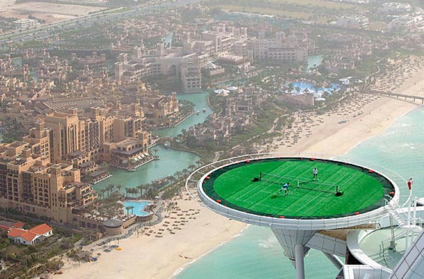 Burj Al-Arapta bir gece konaklama bedeli bin dolar. Otelin, tepesindeki tenis kortunu görmek için ise yüz doları gözden çıkarmak gerekiyor. Tabi metrelerce yükseklikte tenis oynamak ve manzaraya karşı spor yapmak elbette tarif edilemez.