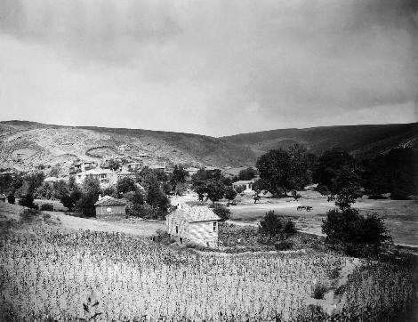 Ayazağa Köyü'nde inşa edilen cami-i şerifin ve mektebin ön tarafından görünüşü.