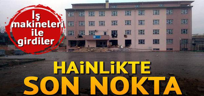 MARDİN'in Nusaybin İlçesi'nde, PKK'lılar Yavuz Selim İlk ve Ortaokulu binasını iş makineleriyle tahrip etti.