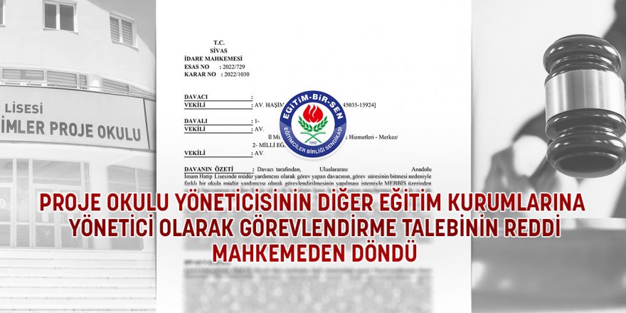 Proje okulu yöneticisinin diğer eğitim kurumlarına yönetici olarak görevlendirme talebinin reddi mahkemeden döndü
