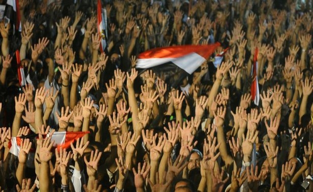 Darbe karşıtı protestolar ile demokrasi yanlılarının merkezi ve sembolü olan Kahire’deki Adeviyye Meydanı’nda Mısırlılar haftalarca eylem yaptı. Rabia işareti, özgürlüğün, demokrasinin, adaletin, meşruiyetin sembolü olarak Rabia Meydanı'nda doğdu ve kısa sürede tüm dünyaya yayıldı. Rabia işareti sadece Mısırlılar'ın değil dünya mazlumlarının özgürlük sembolü oldu.