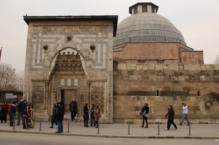 Üst kısmı yıldırım kurbanı olan İnce Minare'nin ahşap ve taş kabartmalarını hayranlıkla inceleyin.