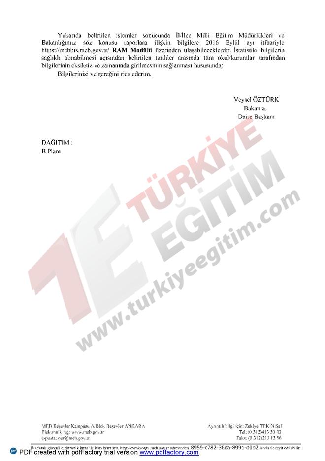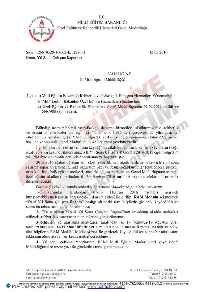 Bilindiği üzere rehberlik ve psikolojik danışma hizmetleri; okLillanınızda ve rehberlik ve araştırma merkezlerinde ilgi (a) Yönetmelik hükümleri çerçevesinde yürütülmekle, yürütülen çalınmalar ilgi (a) Yönetmeliğin 23, ve 47, maddeleri gereğince eğilim öğretim yılı başında vc sonunda Genel Müdürlüğümüze iletilmesi gerekmektedir.