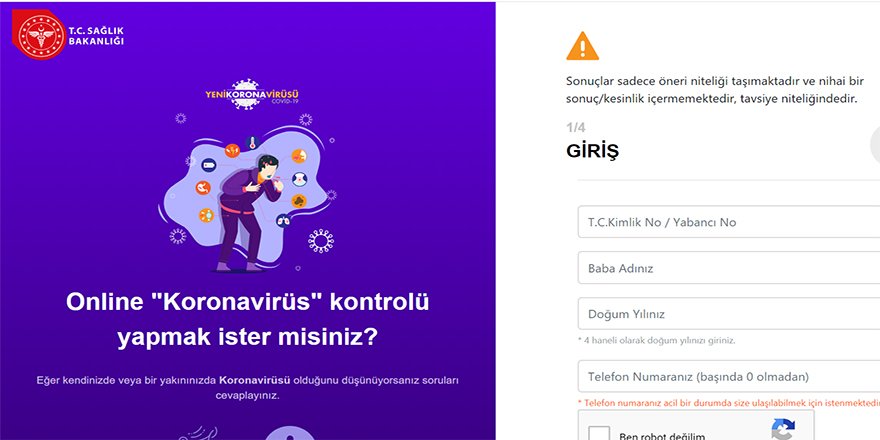 Sağlık Bakanlığı'ndan online koronavirüs testi