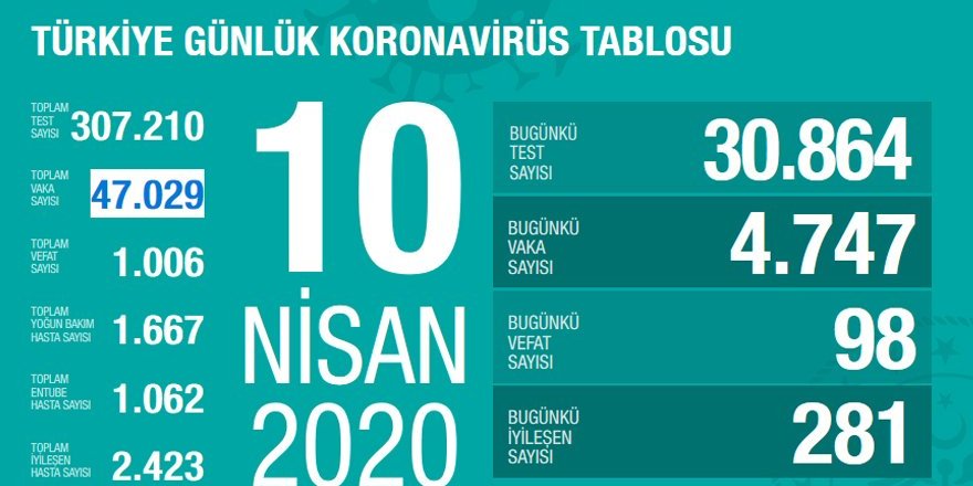 Vaka Sayısı ve Vefatta Artış: Vaka 4.747, Vefat 98! (10.04.2020)