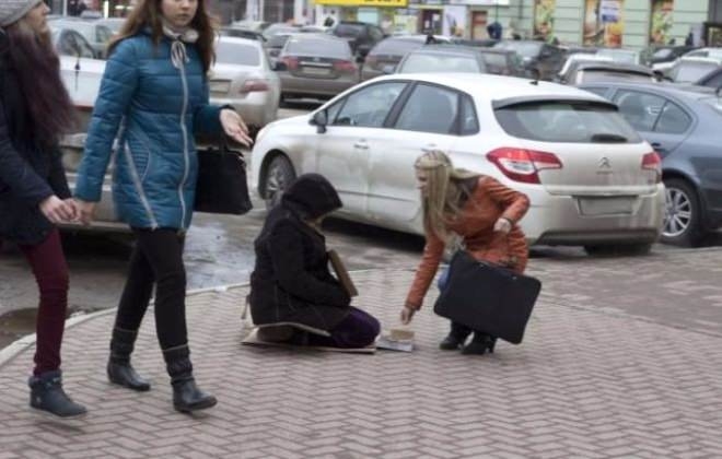 Yoldan geçen insanların para verdiği kadın, kutunun içindeki paralarını saydıktan sonra...