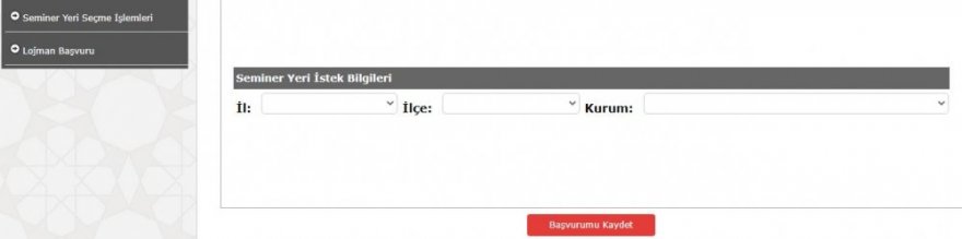 Açılan ekranda seminer çalışmasına katılmak istediğiniz il/ilçe/kurum bilgilerini seçtikten sonra BAŞVURUMU KAYDET yazısı tıklanır.