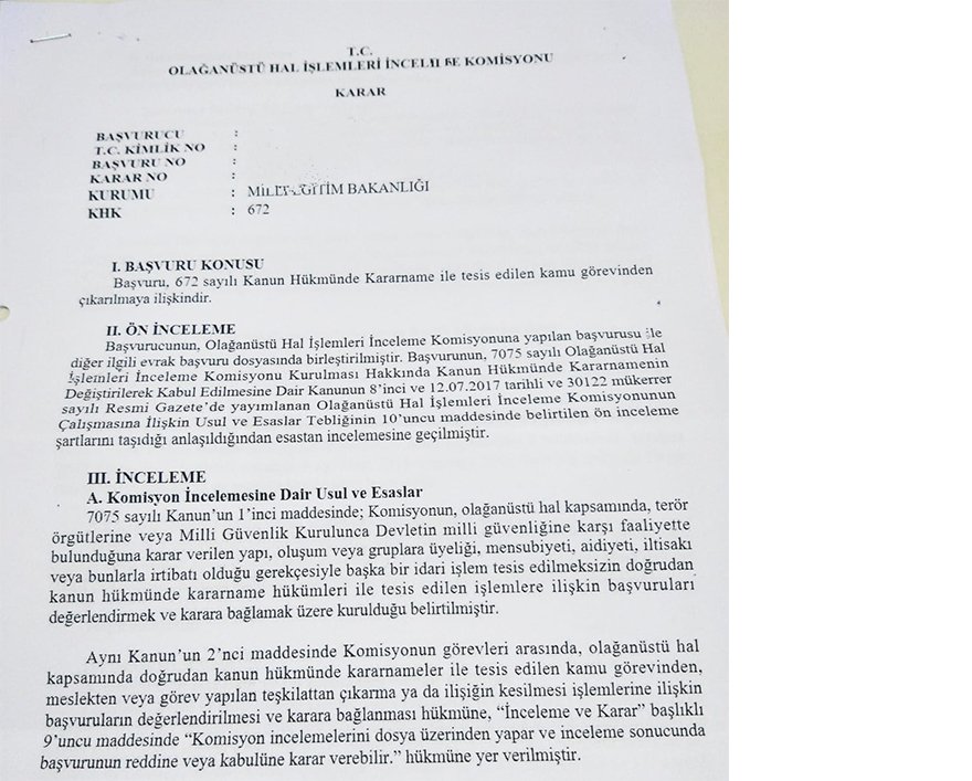 OHAL Komisyonu, 672 sayılı KHK ile MEB'deki görevinden ihraç edilen kamu personelinin başvurusunu karara bağladı