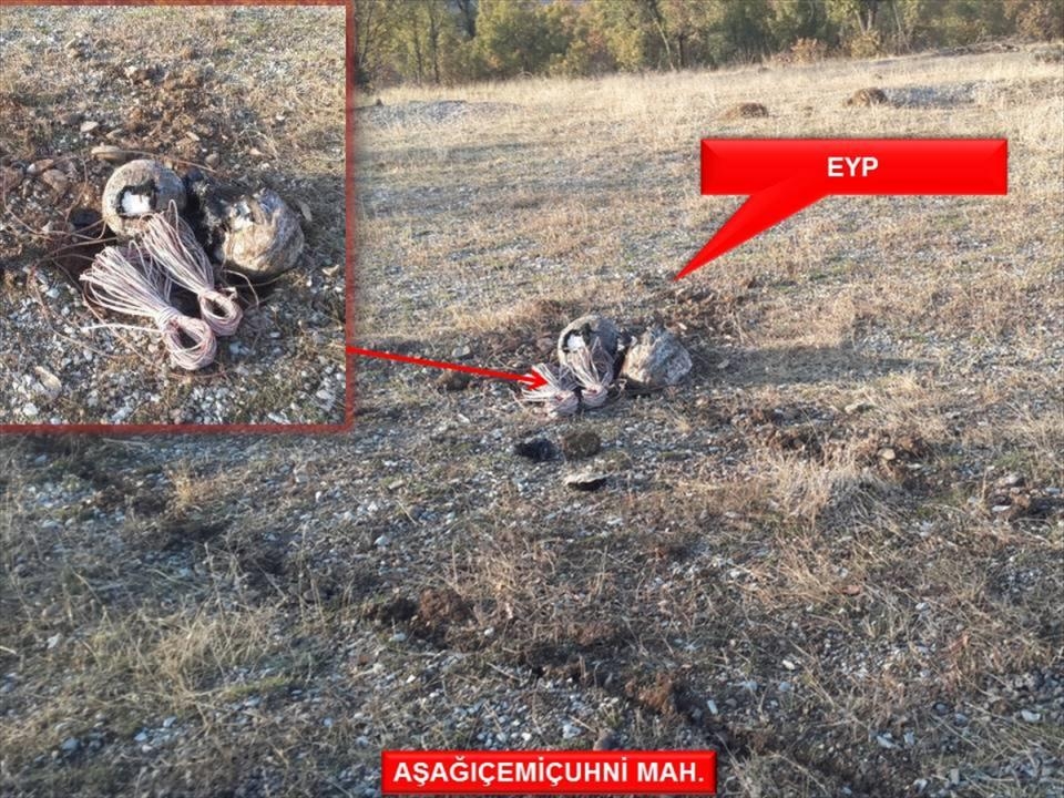 Güvenlik güçleri, ele geçirilen yaşam malzemeleri ve 1 adet el yapımı patlayıcı ile tuzaklanmış aracı imha etti.