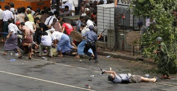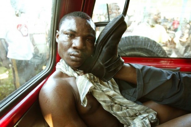 Gazze şeridinde İsrail askerlerinin bibergazı saldırısından kaçmaya çalışan Filistinliler 20 Ekim 2000 Fotoğraf: Reinhard Krause