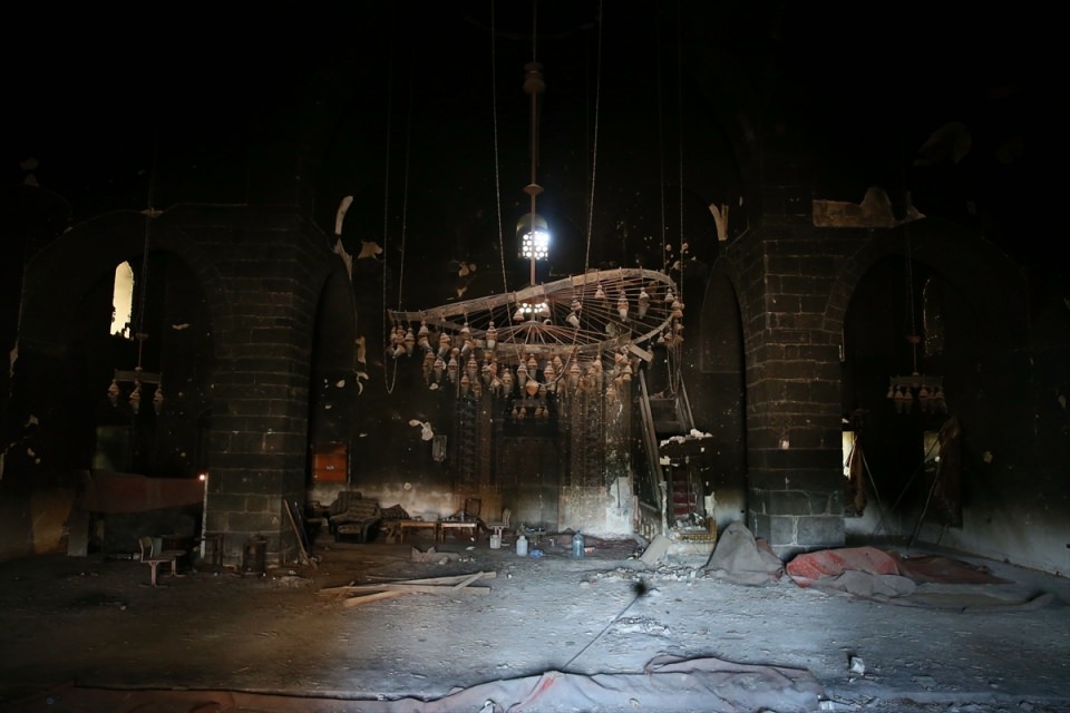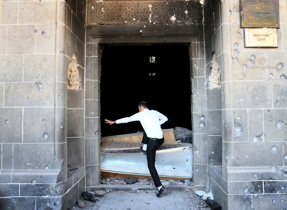 Sur ilçesinde teröristlere yönelik operasyonun ardından arama tarama çalışmalarının devam ettiği Fatih Paşa Mahallesi'nde PKK'lı teröristlerce 2 kez ateşe verilen ve halk arasında "Kurşunlu Cami" olarak bilinen Fatihpaşa Cami'nin son hali görüntülendi.