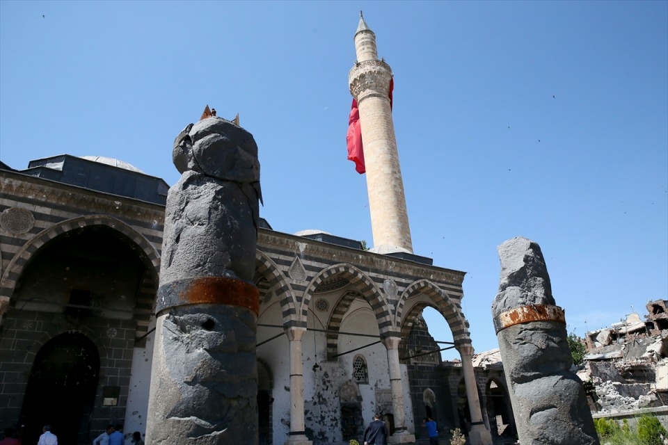 Evsen, caminin PKK'lı teröristlerce günlerce karargah olarak kullanıldığına işaret ederek, "Terör olaylarından 11 kültür varlığımız zarar gördü. Bunlardan 9'u cami, 2'si de kilise. Bu varlıklar ciddi hasar gördü. Onları da en kısa sürede restore edip hizmete açmayı planlıyoruz." ifadelerini kullandı.